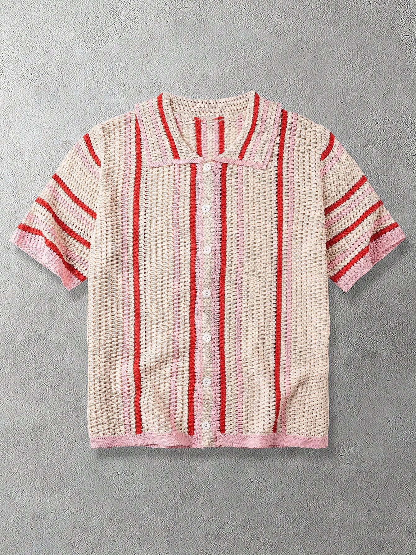 Herren gestreiftes Kurzarm Lässig Strick-Top mit Einzelknopfleiste