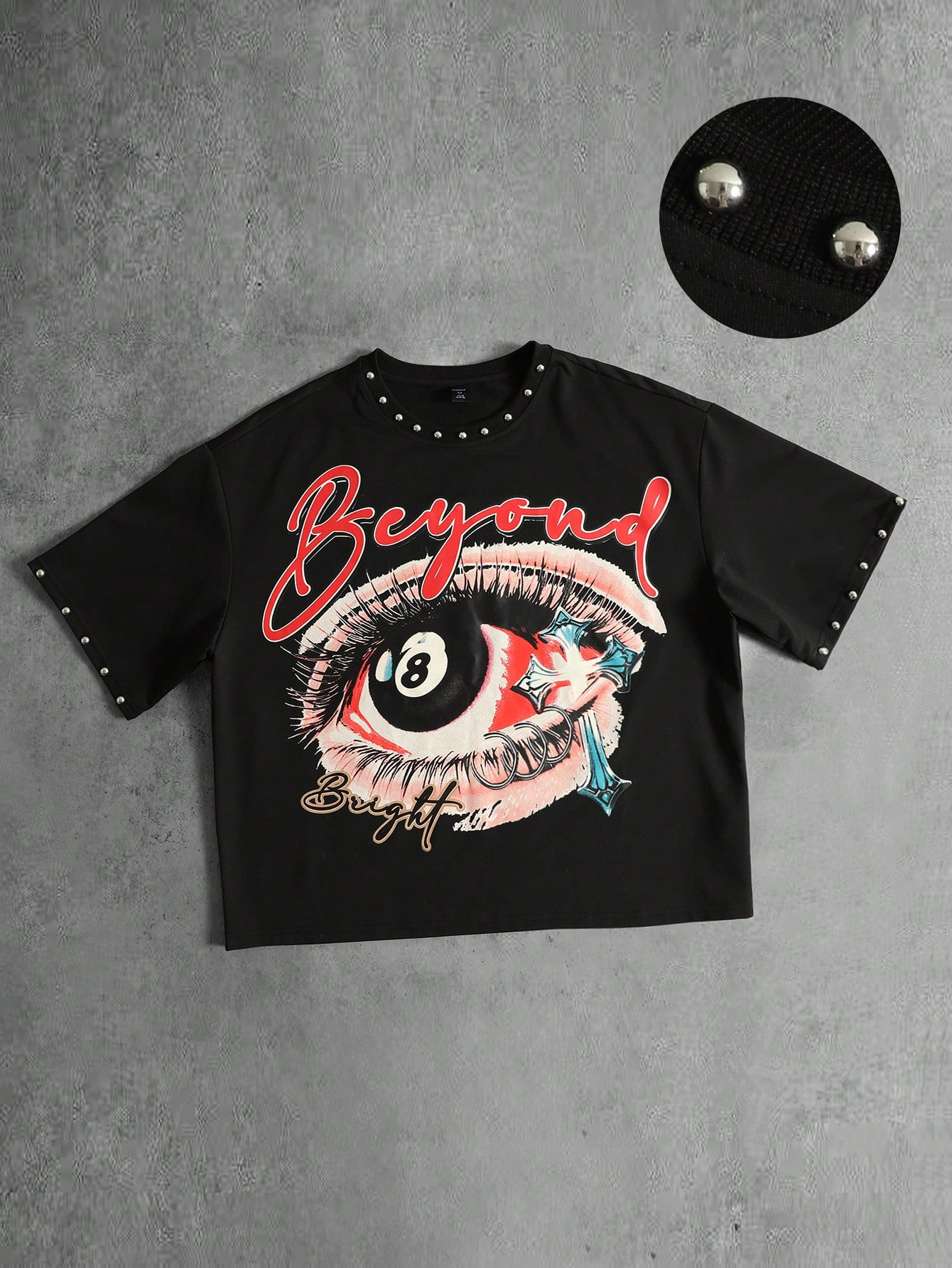 Herren T-Shirt mit Nieten und Aufdruck, Kurzarm