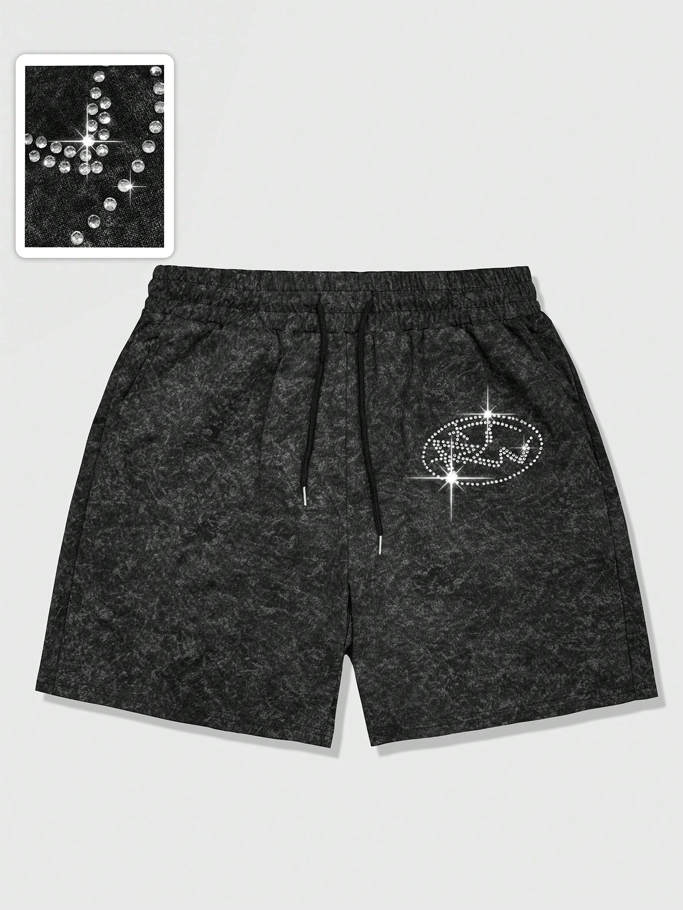 Herren Sommer Lässig Shorts mit Strass und Kordelzug in der Taille