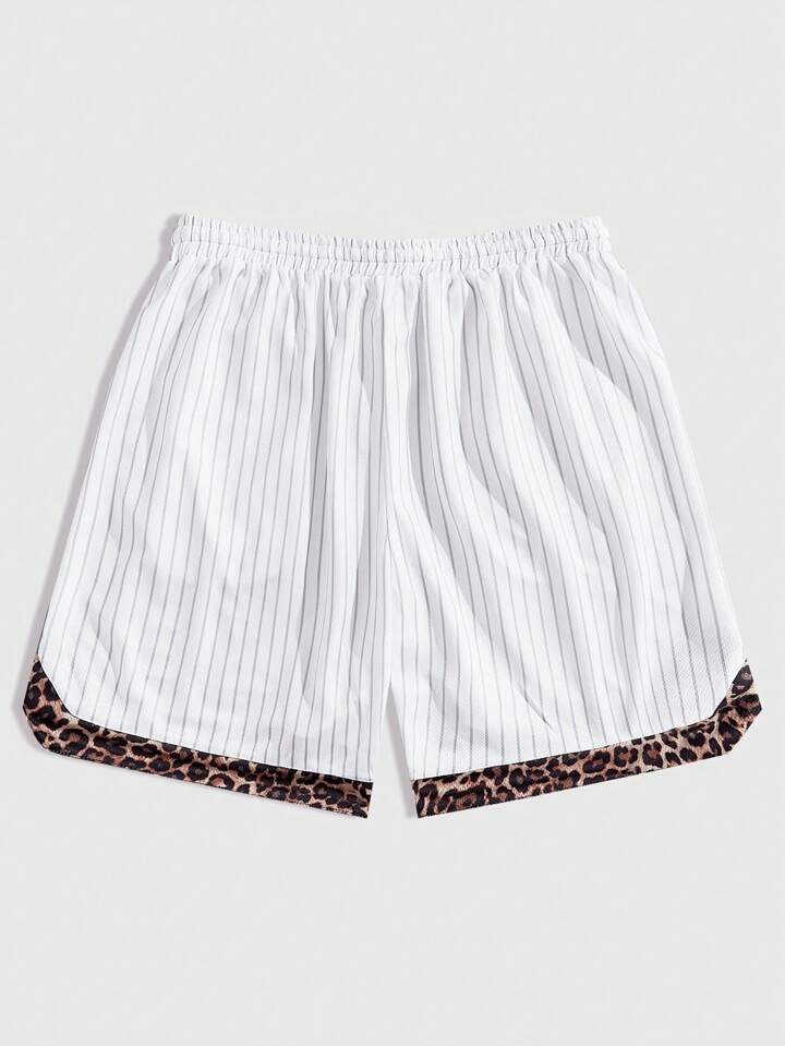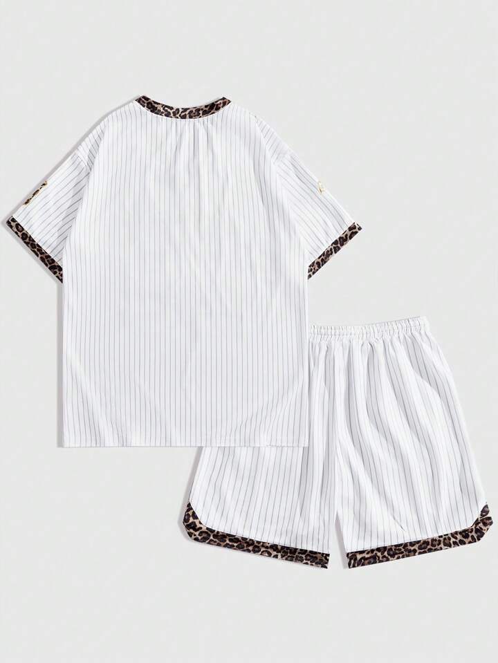 Prep Herren Sommer Leopard Muster Patchwork Baseball T-Shirt und lässige Shorts Set