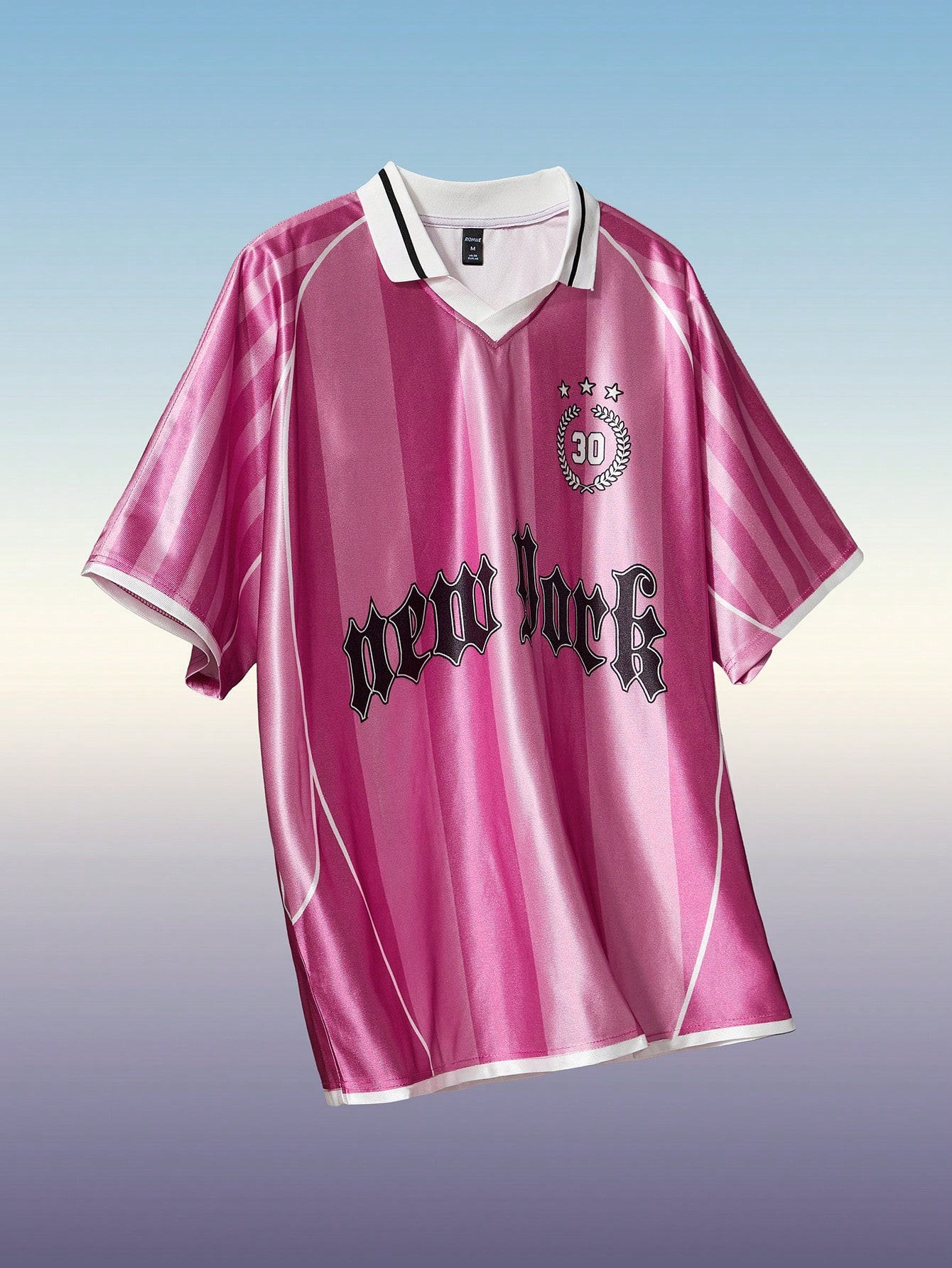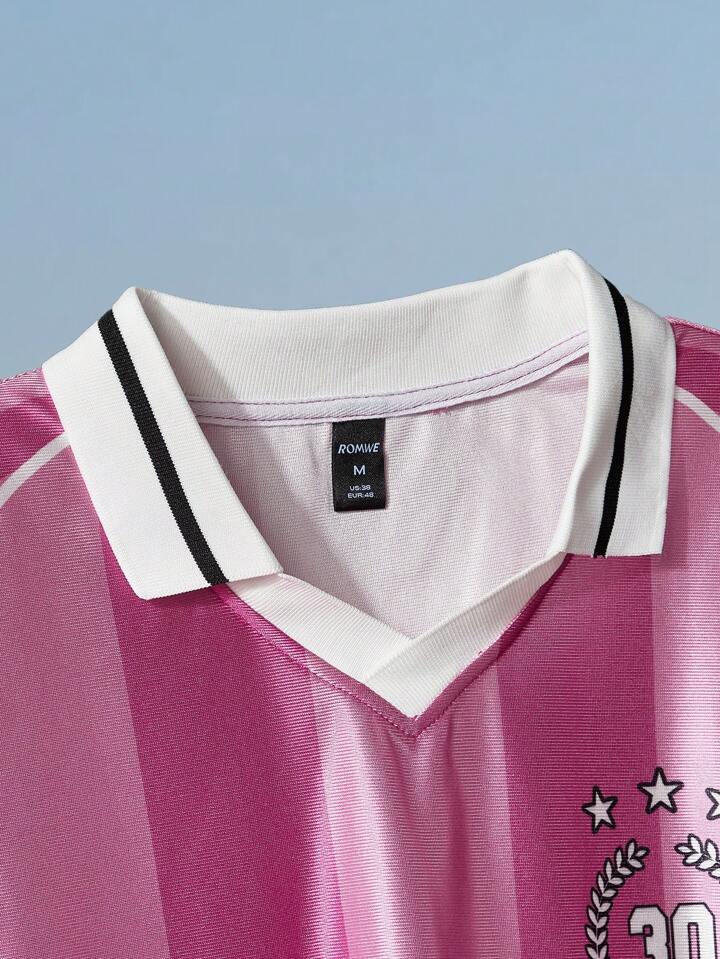 Prep Herren Sommer Buchstaben Gestreift Kurzarm Lässiges Loose Poloshirt