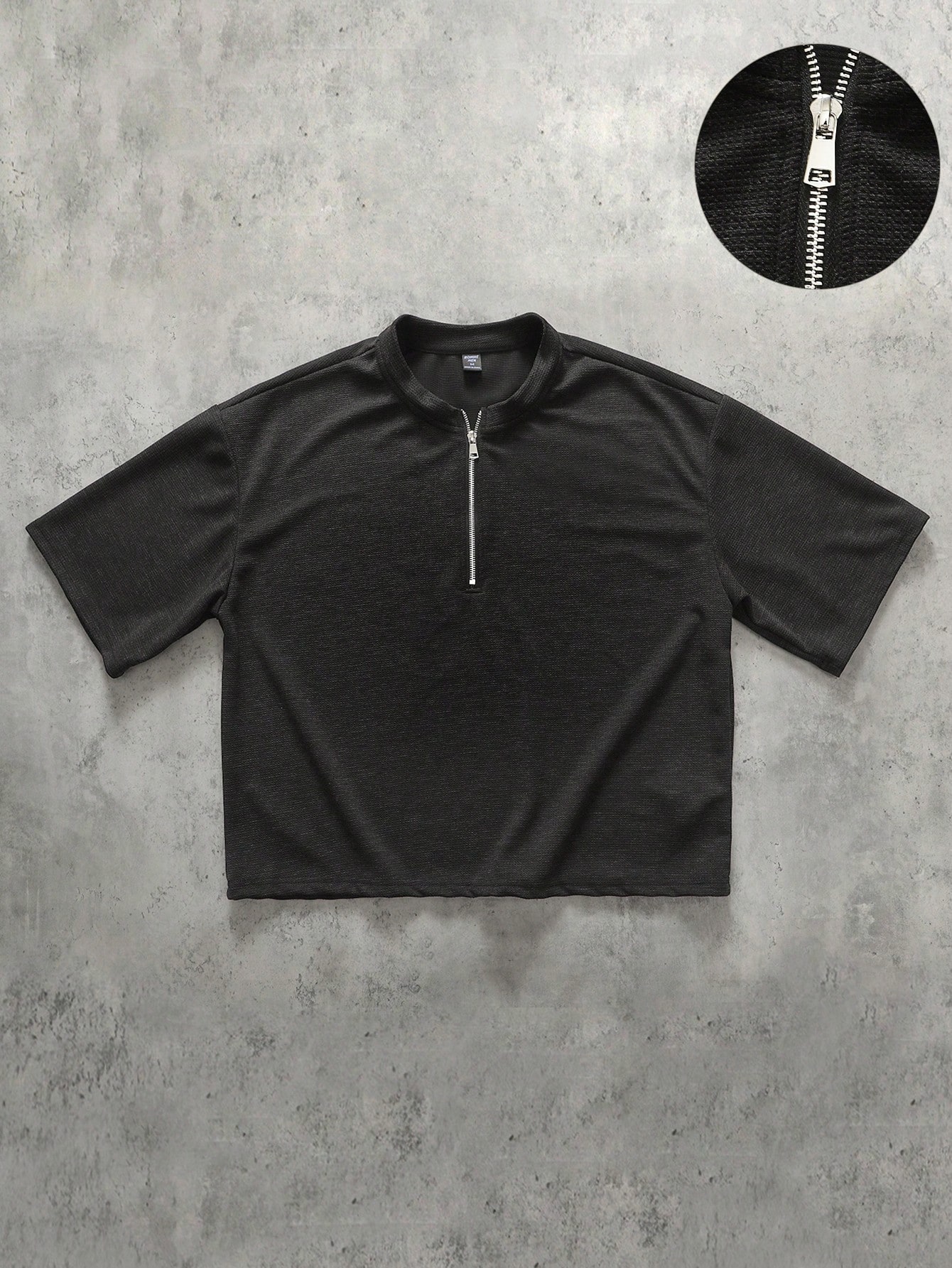 Herren Reißverschluss-Halbplakette Loose Washed Kurzarm T-Shirt