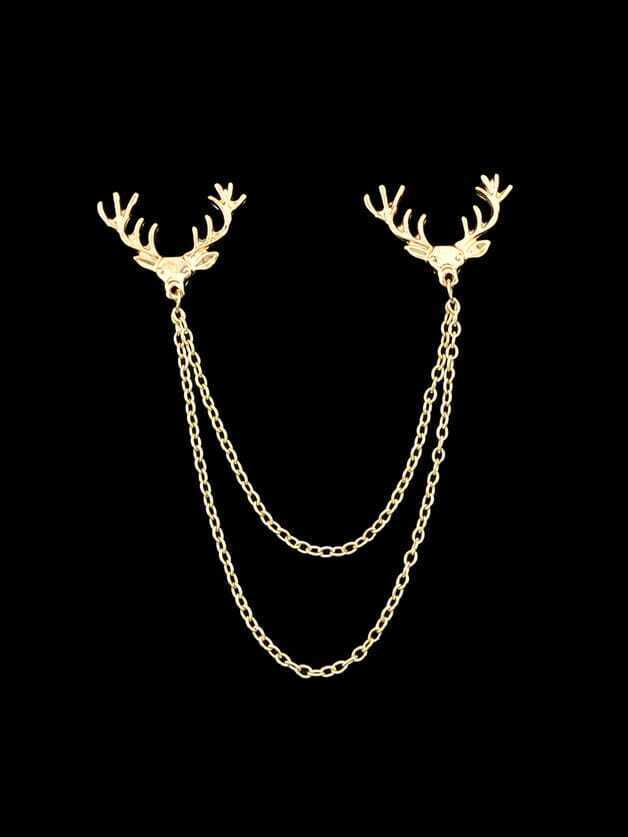 Kragenspitzen mit Metall Rehkopf Muster und Kette