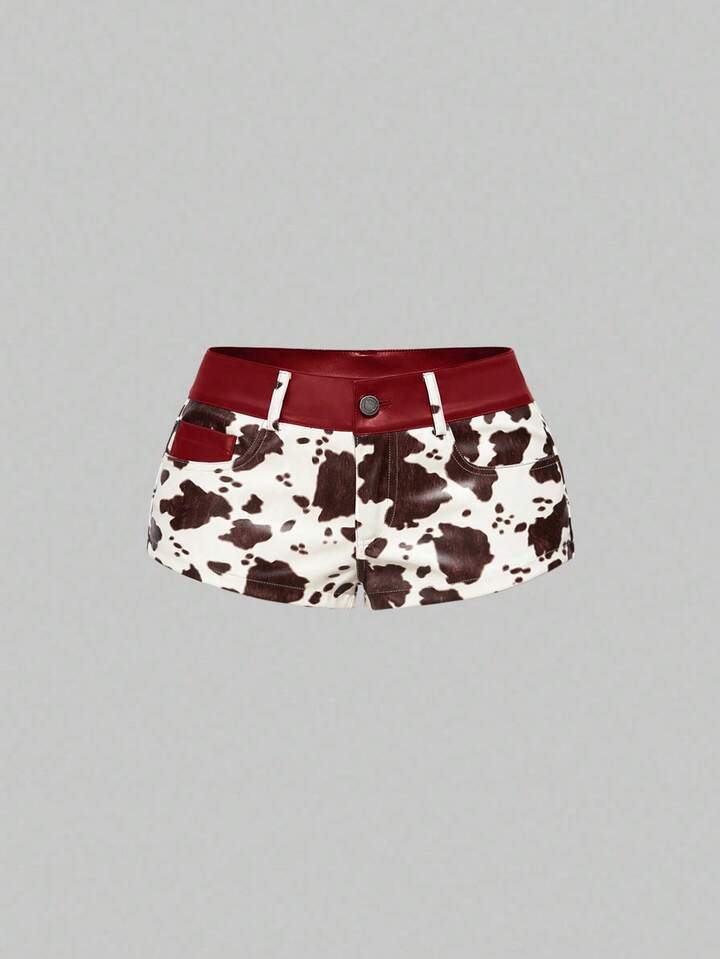 Millennium Babe Vintage Hippie Babe Tierdruck Kunstfell Patchwork Mini Shorts mit niedriger Taille für Frauen