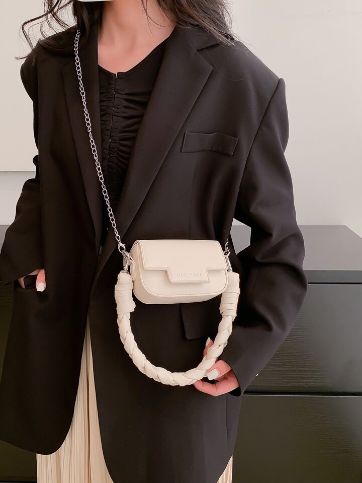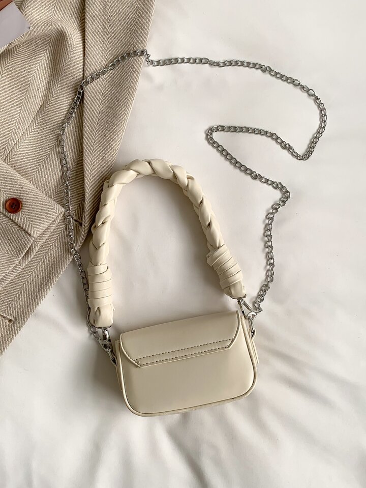 Quadratische Tasche mit Mini geflochtenem Detail, Klappe