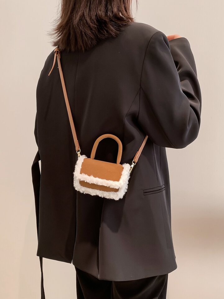 Quadratische Tasche mit Mini Kontrast Flauschig Klappe