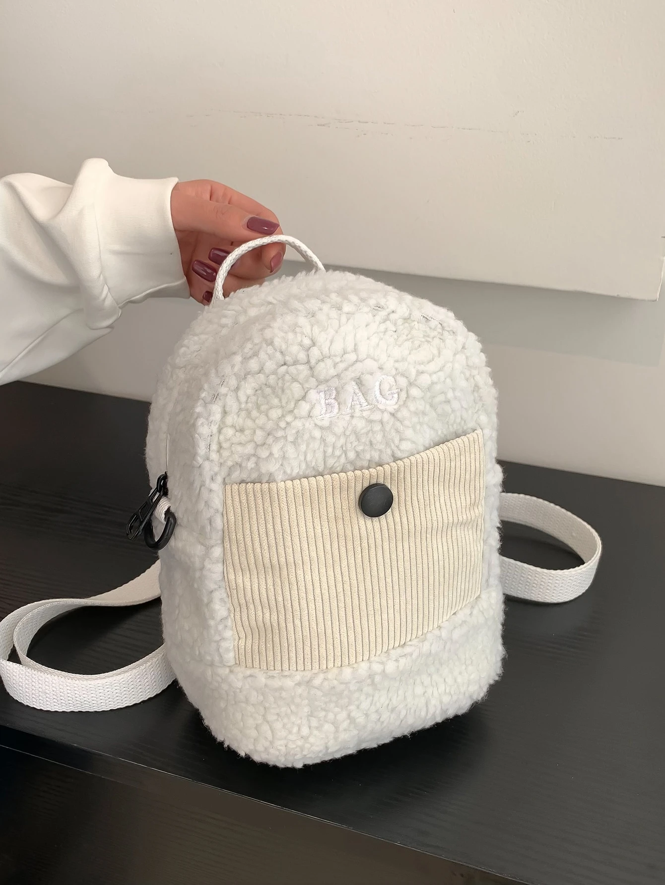 Klassischer Rucksack mit Mini Buchstabe Stickerei, fusselig