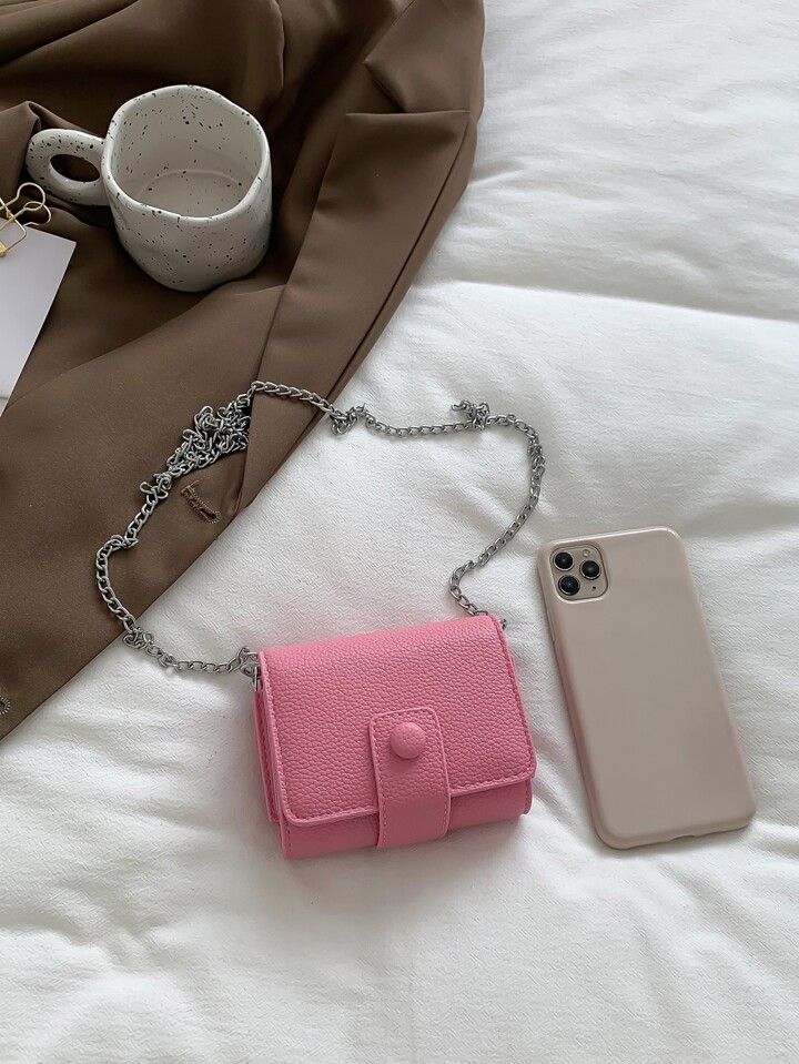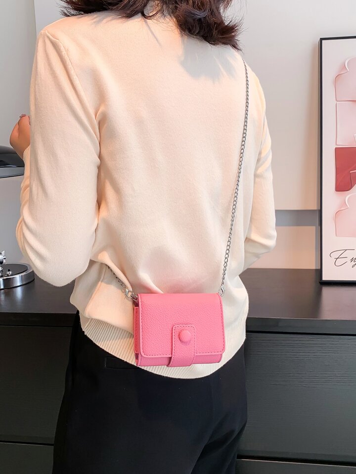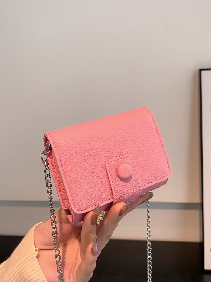 Quadratische Tasche mit Mini Litschi Prägung, Kette