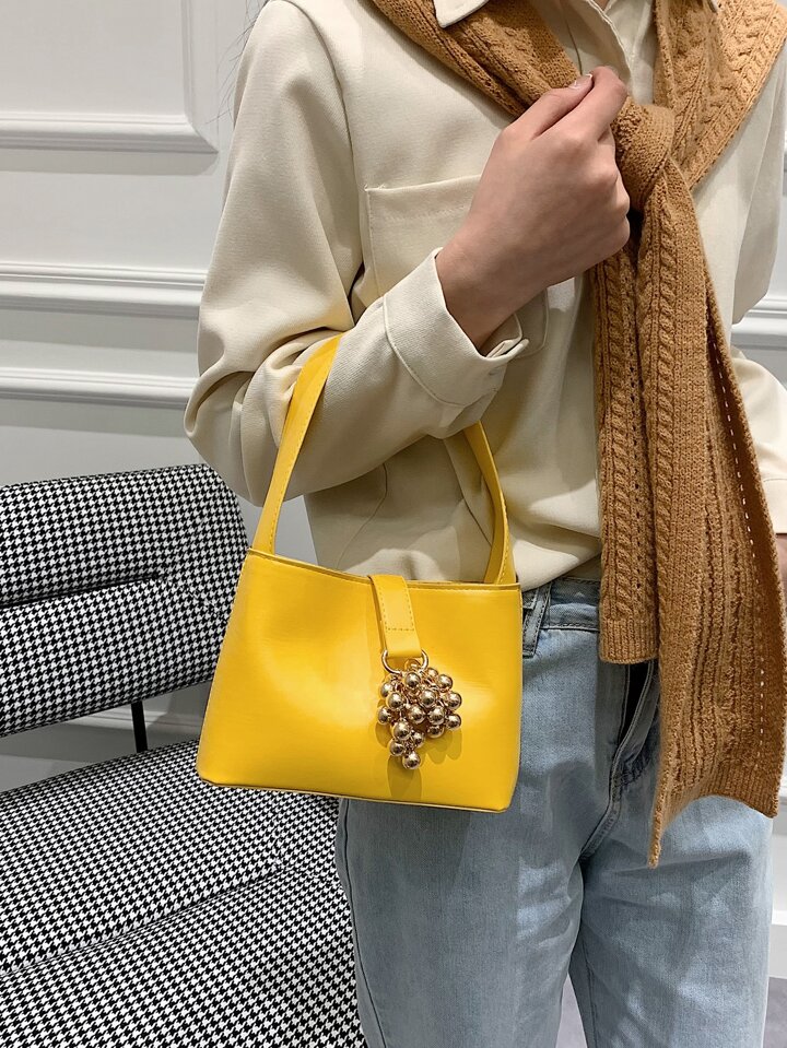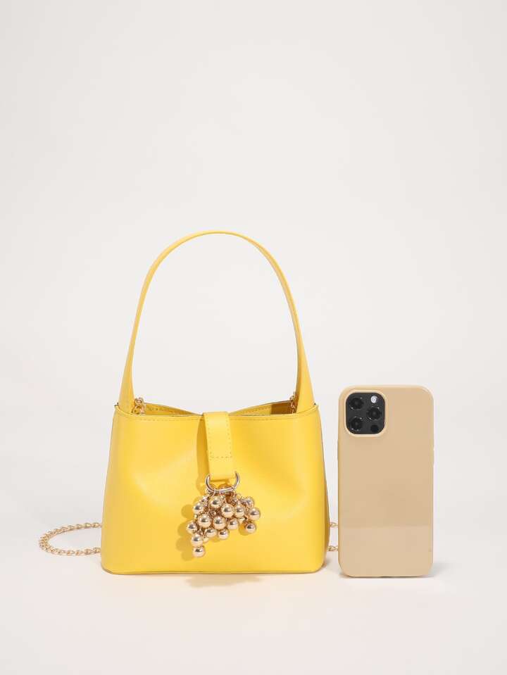 Mini Eimertasche mit Metall Perle Dekor