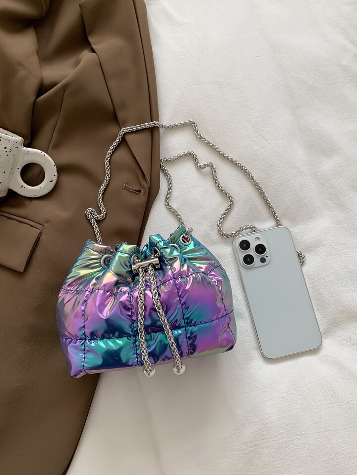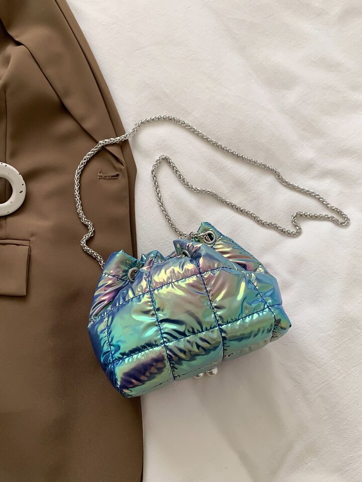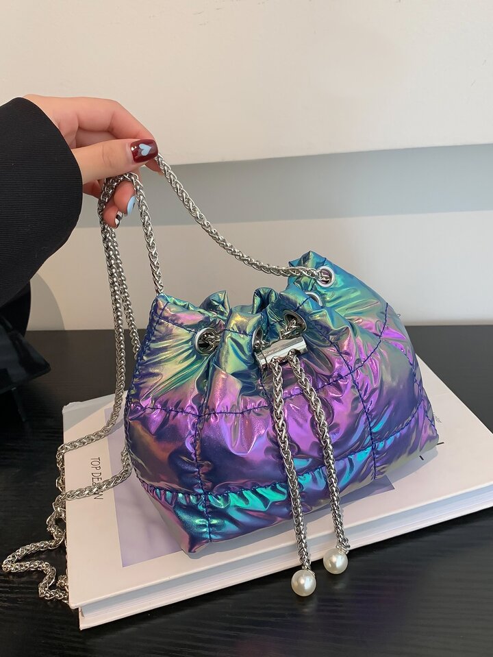 Eimertasche mit Mini Gesteppt Kunstperle Dekor