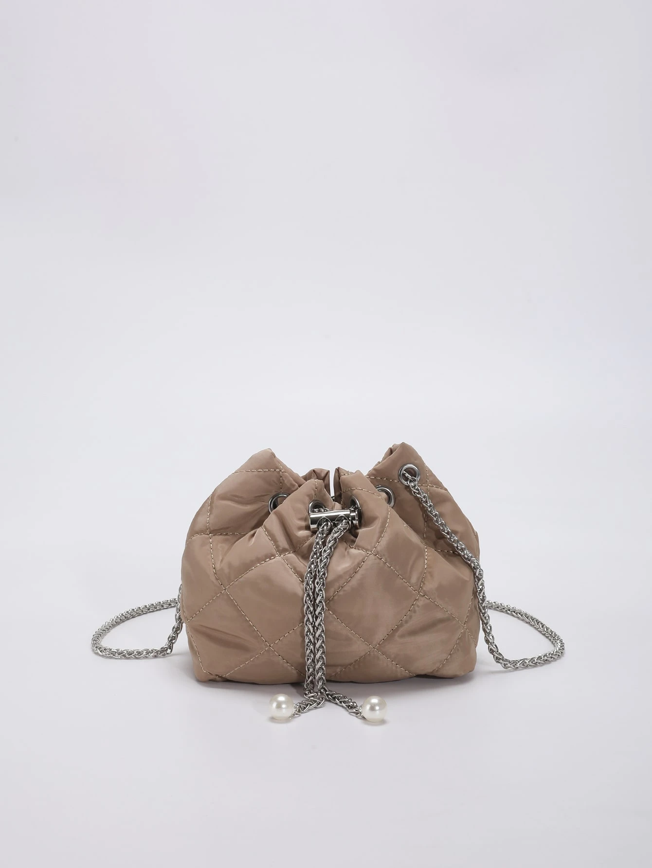 Eimertasche mit Mini Gesteppt Kunstperle Dekor