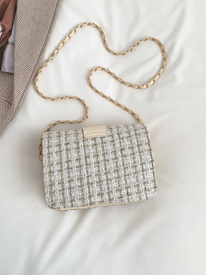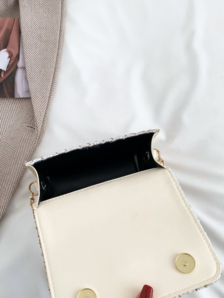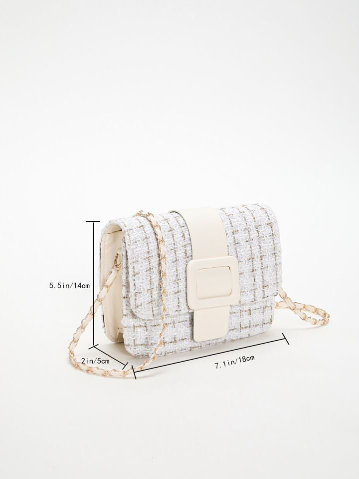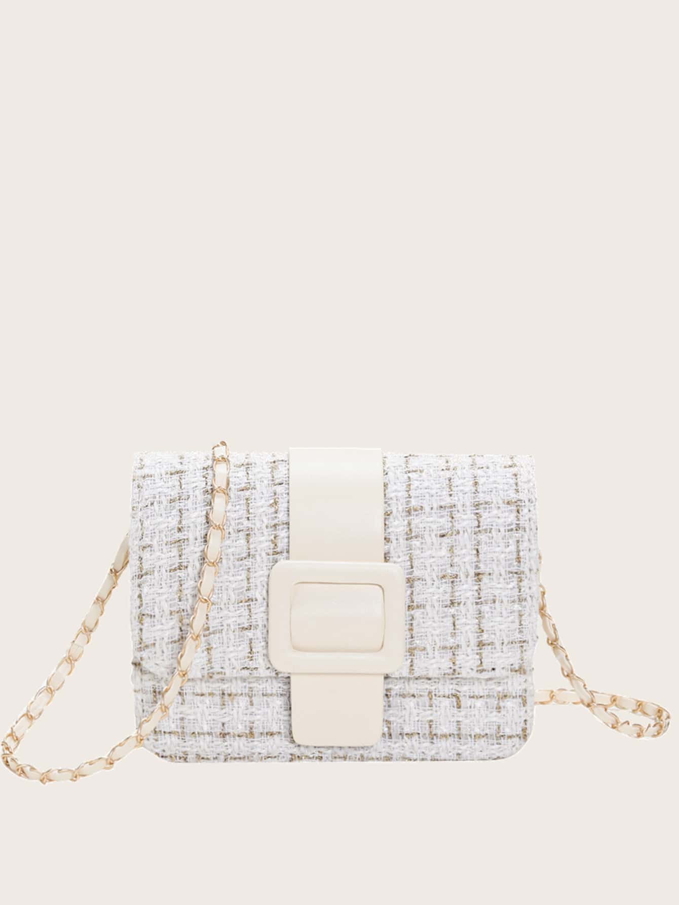 Quadratische Tasche mit Mini Tweed Klappe, Kette