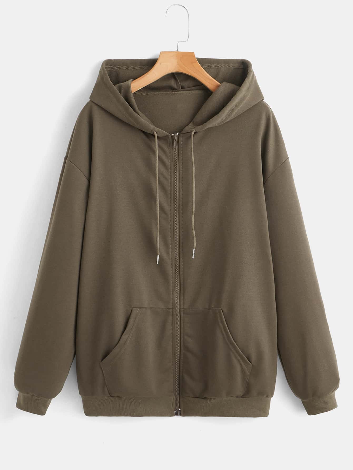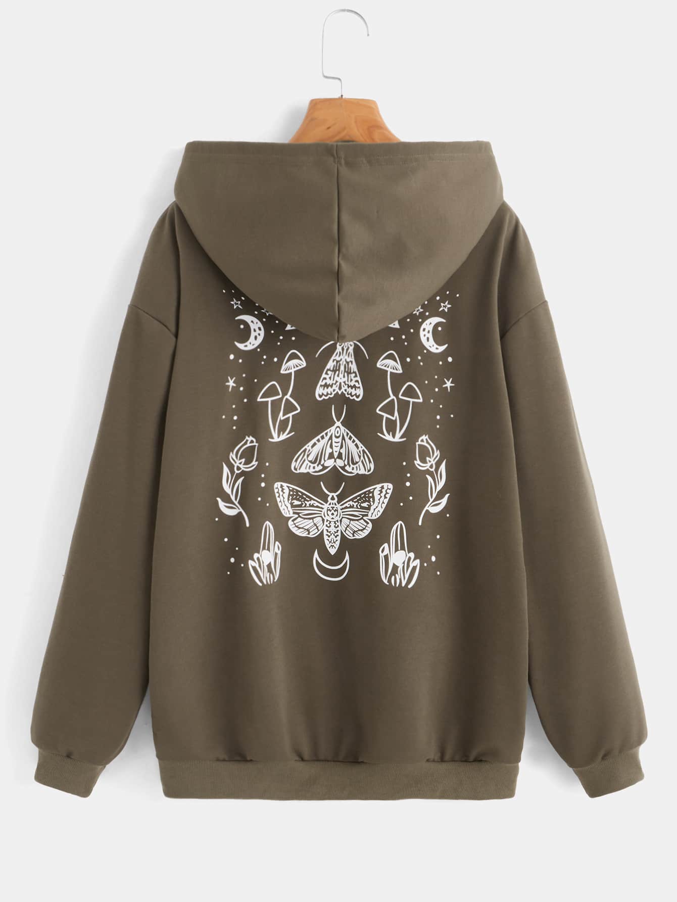 Hoodie mit Pilz & Schmetterling Muster, Drop Shoulder Tunnelzug