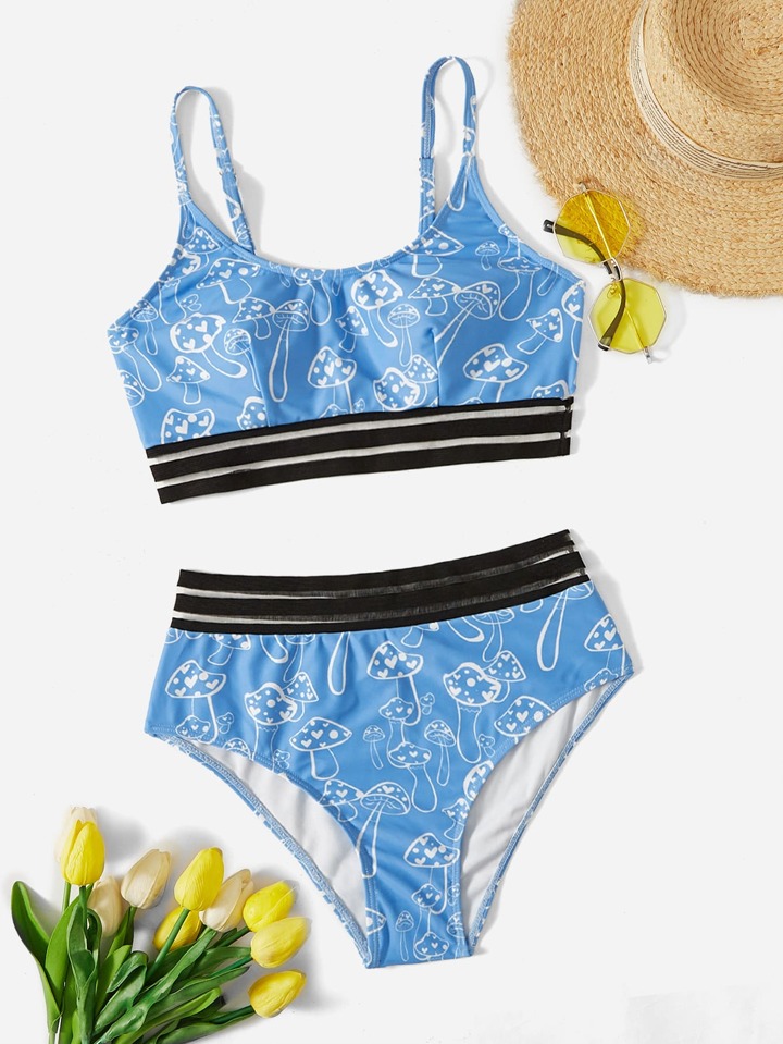 Bikini Set mit Pilz Muster und Streifen für den Sommer Strand