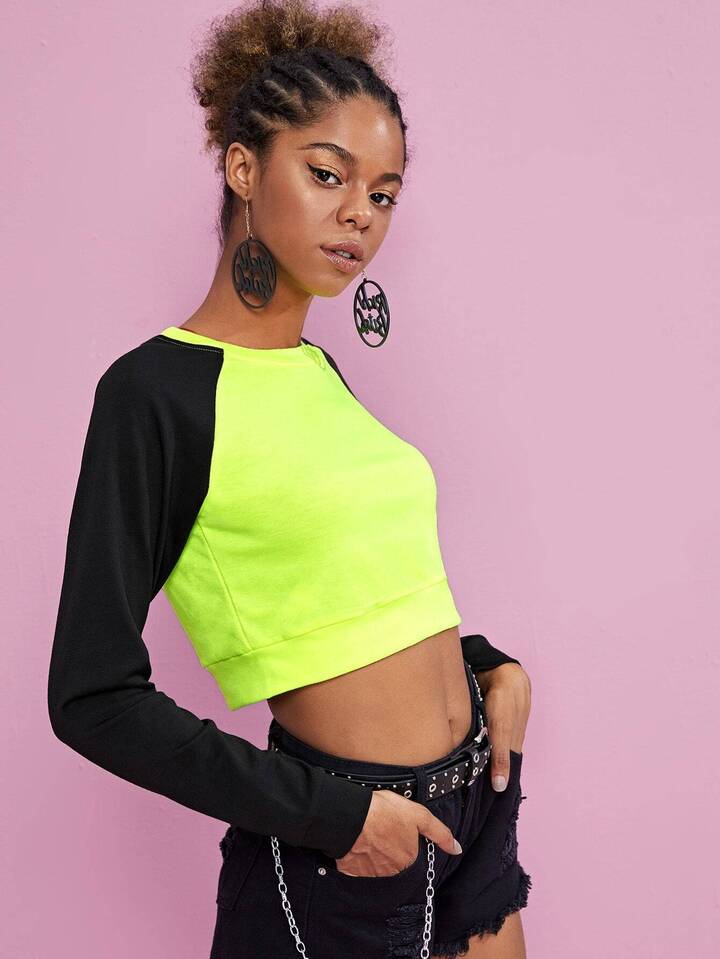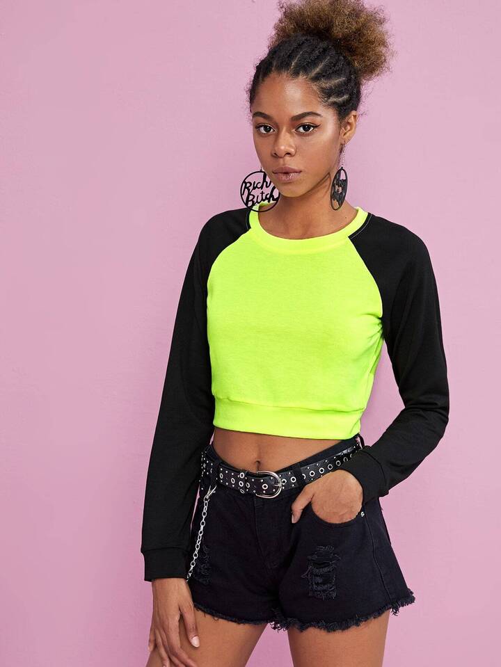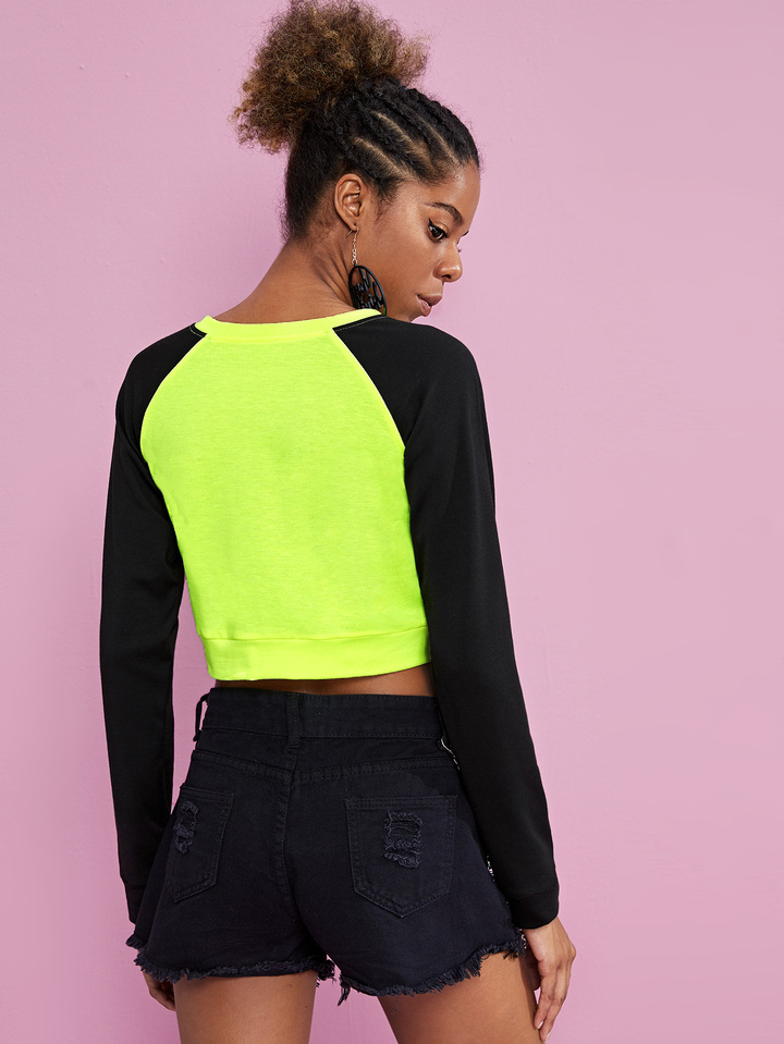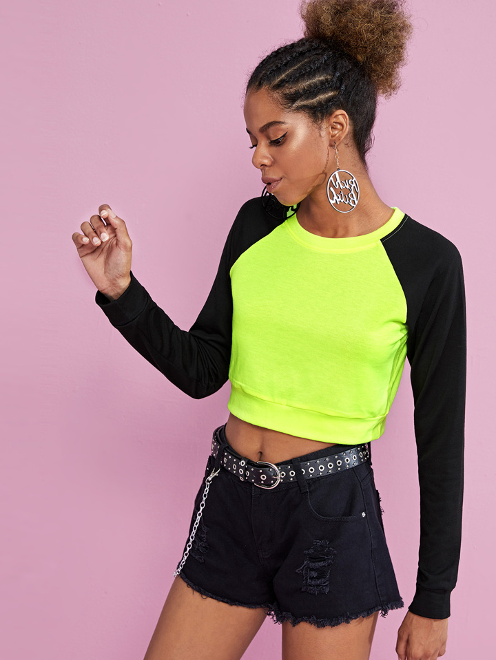 Neon Crop Sweatshirt mit Kontrast Raglanärmeln