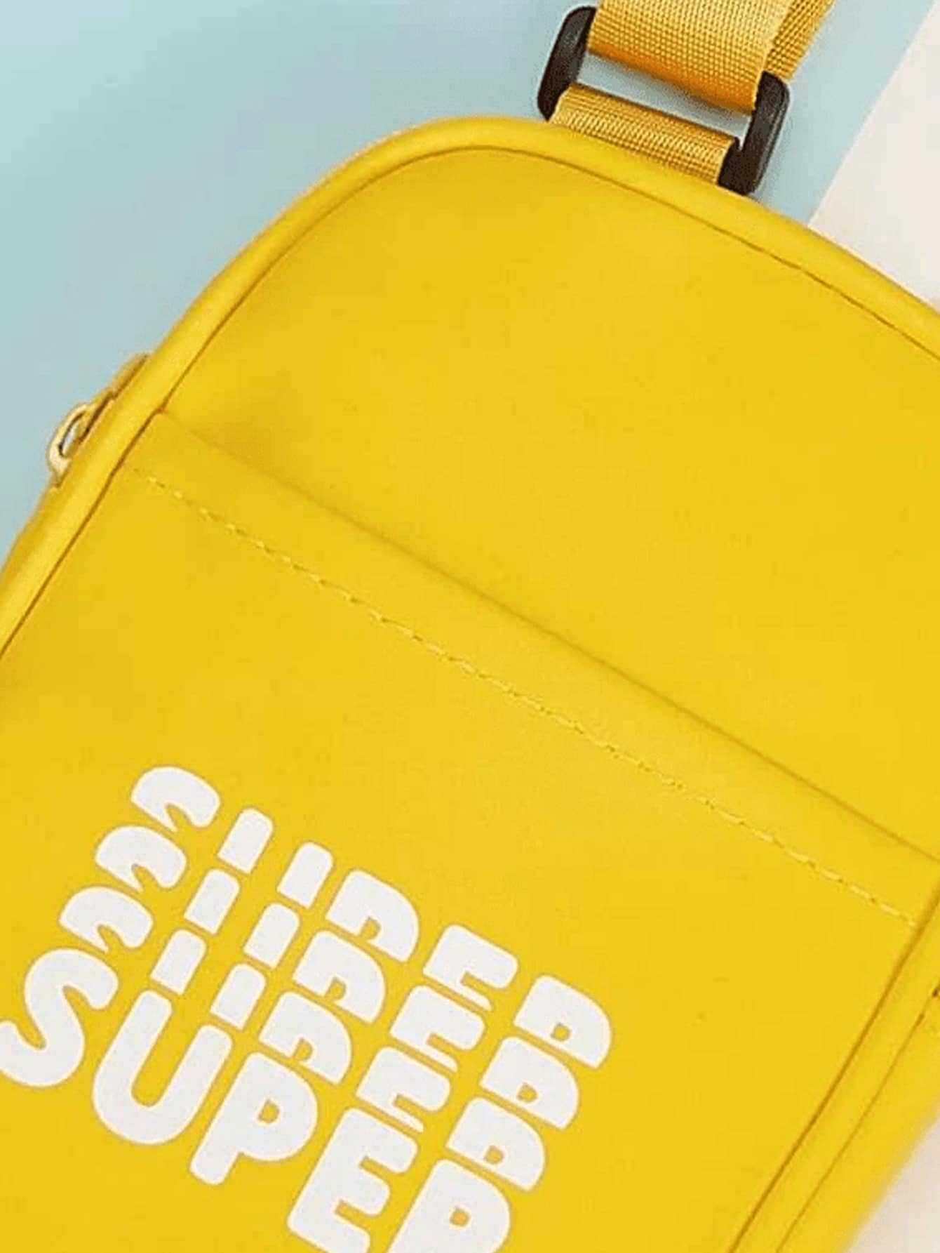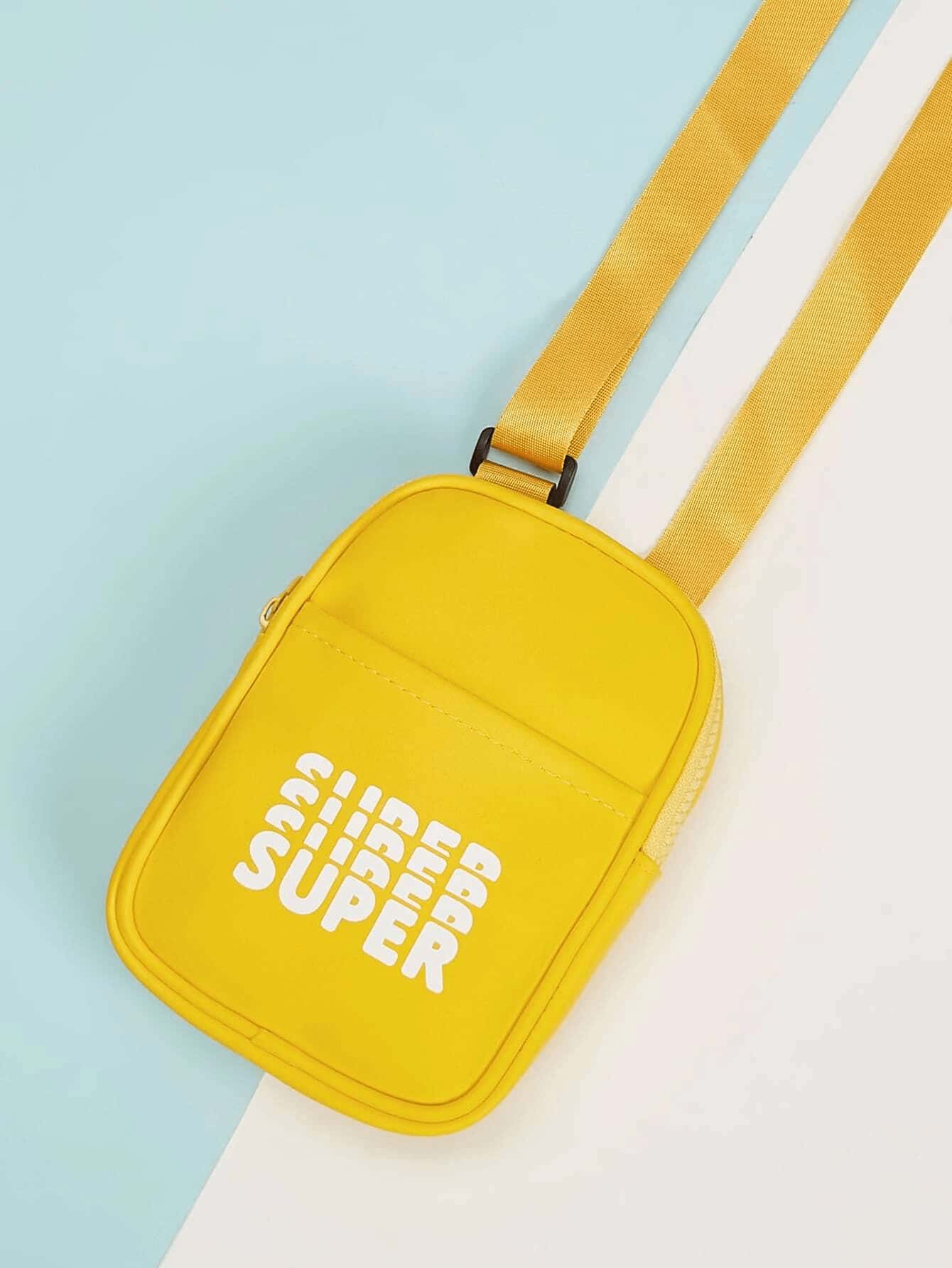 Quadratische Tasche mit Neon orange Buchstaben Grafik
