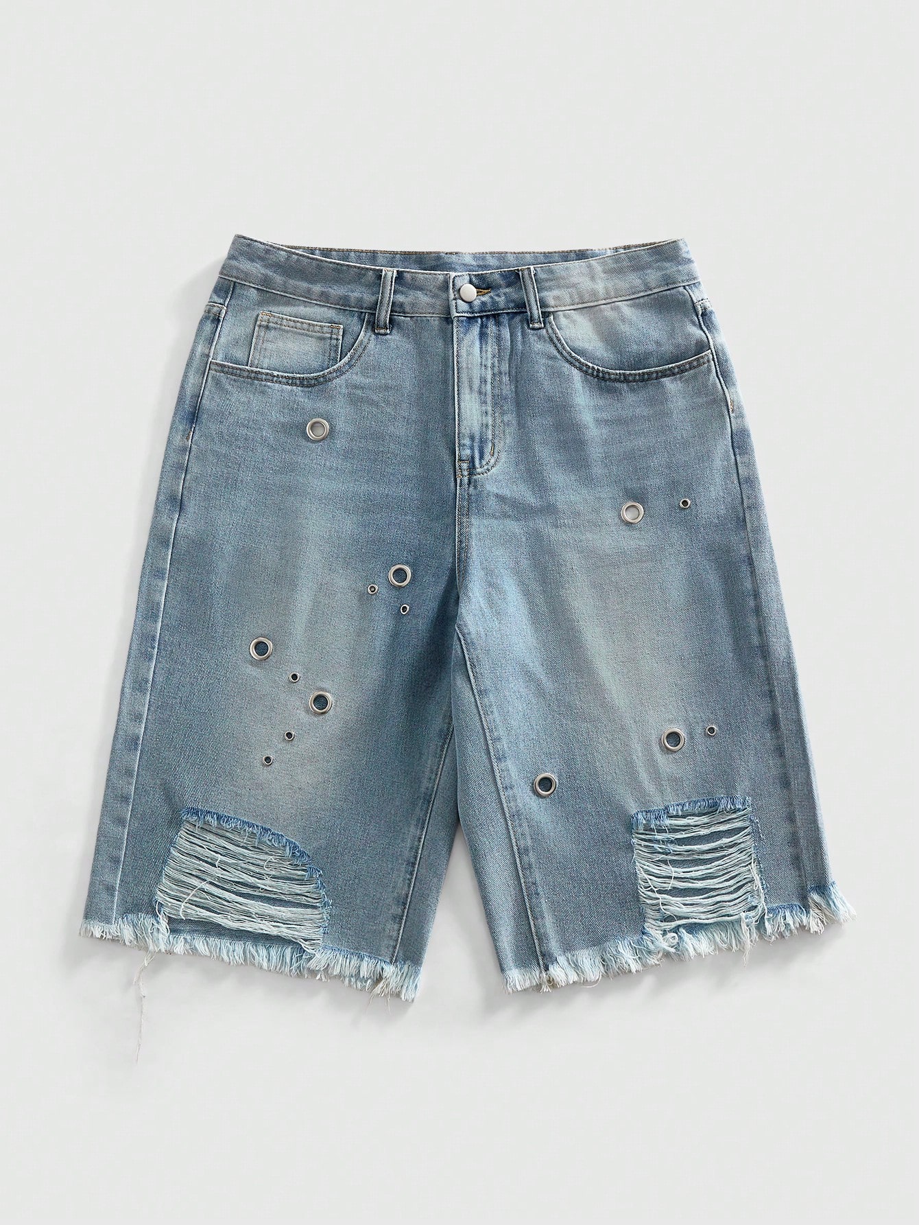 Neue lässige Bermuda-Shorts aus Denim mit Destroyed-Effekt, relaxed fit, vielseitig einsetzbar für Herren