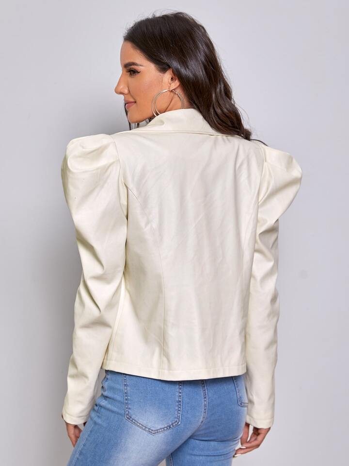PU Jacke mit eingekerbtem Kragen und Gigotärmeln