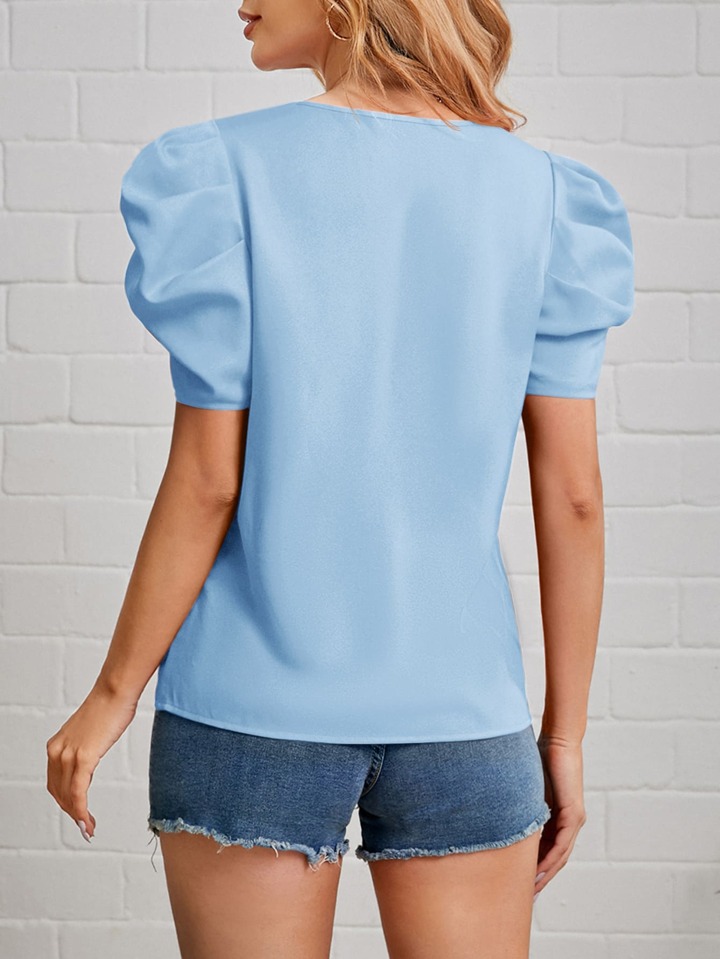 Bluse mit eingekerbtem Kragen, Puffärmeln, Naht vorne