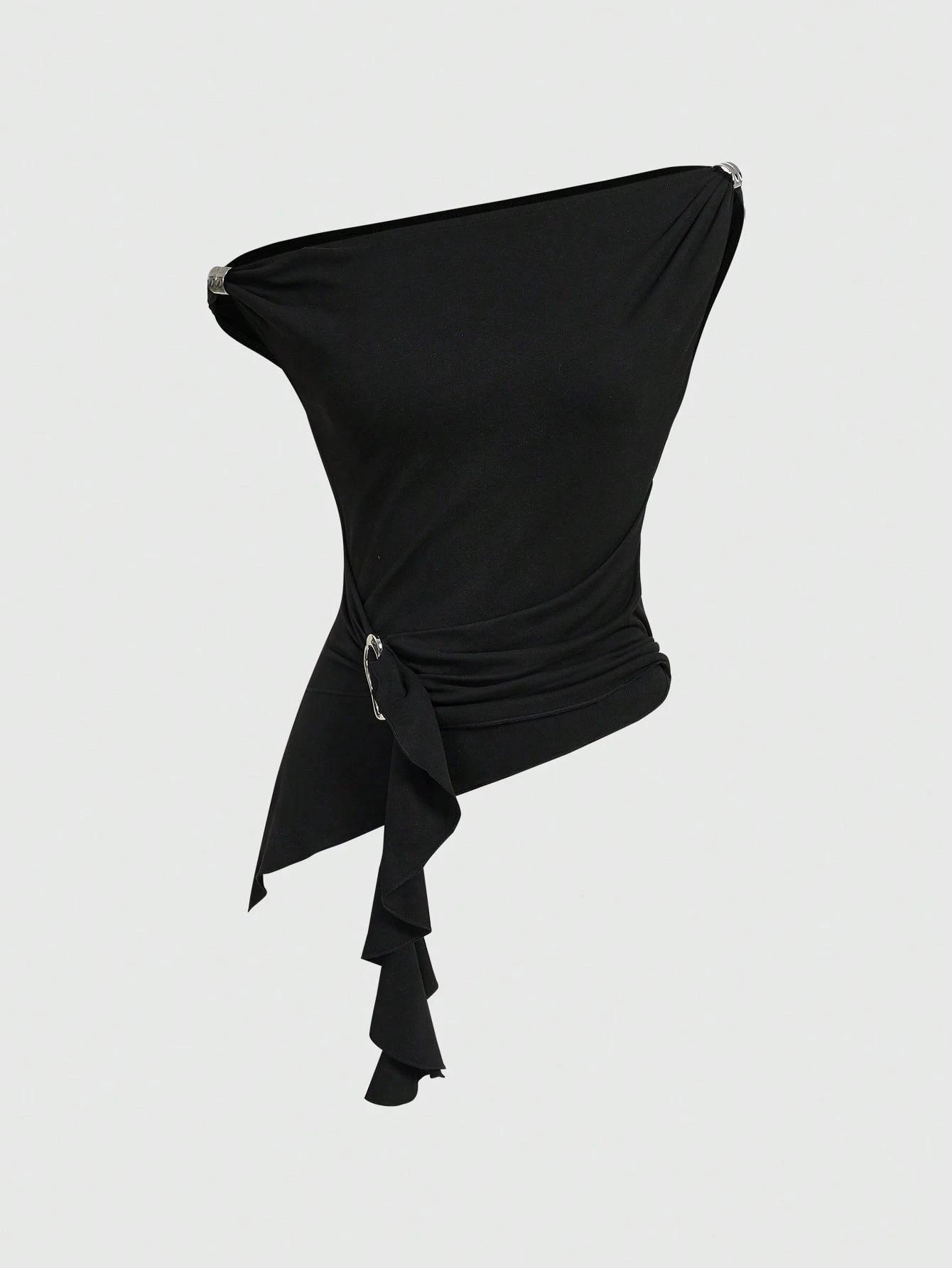 Körperbetontes Damen T-Shirt mit schräger Schulter, geraffter Passform und asymmetrischem Saum