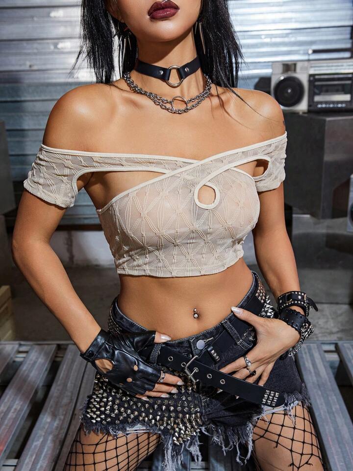 Top mit Ausschnitt vorne, Crop Mesh