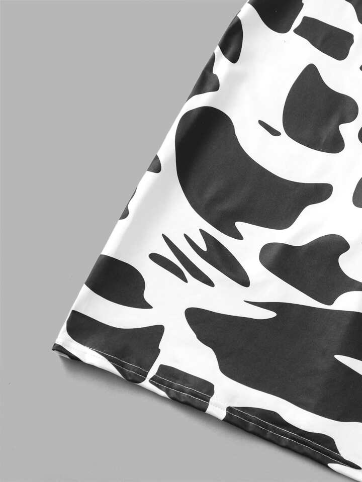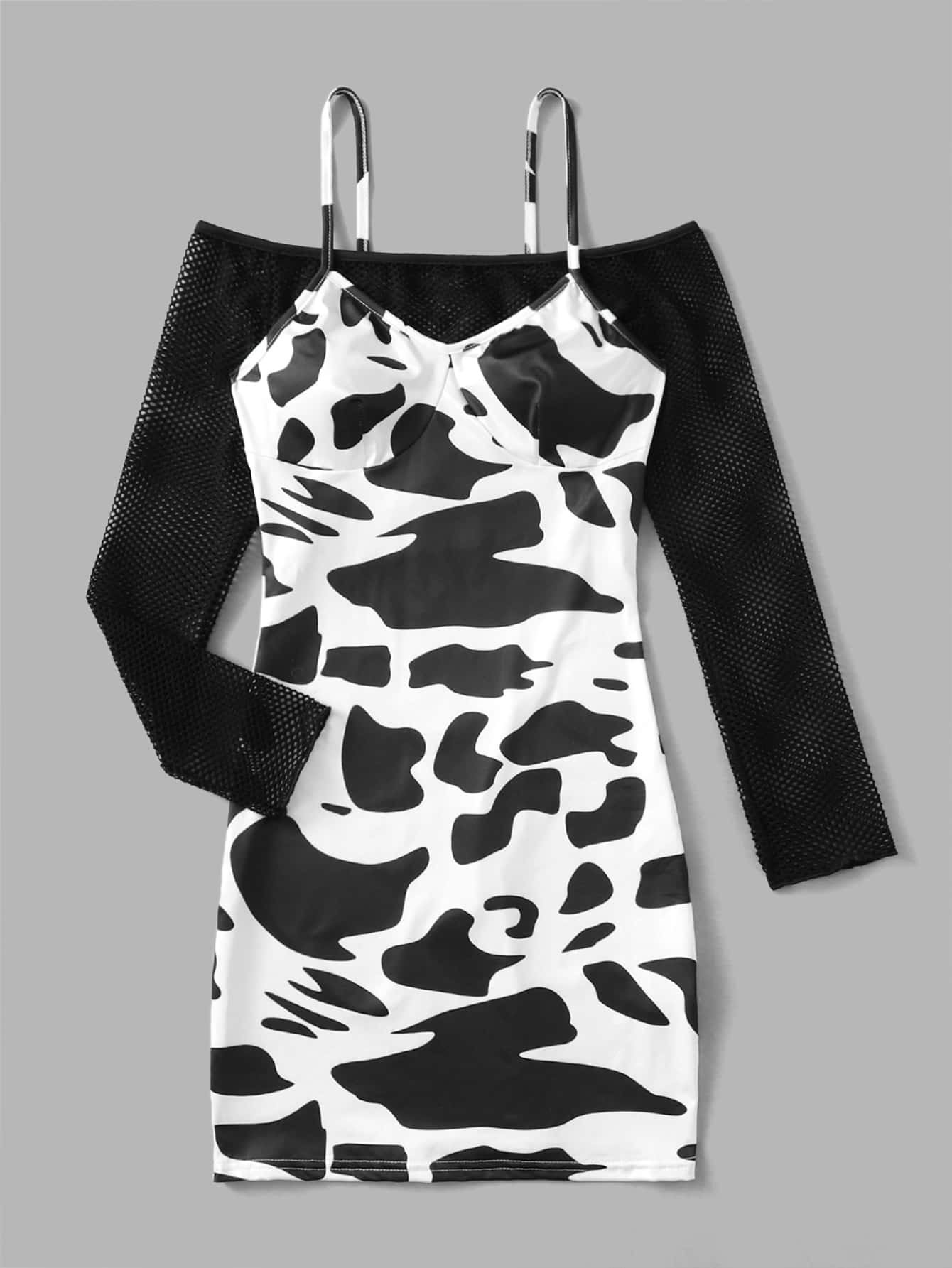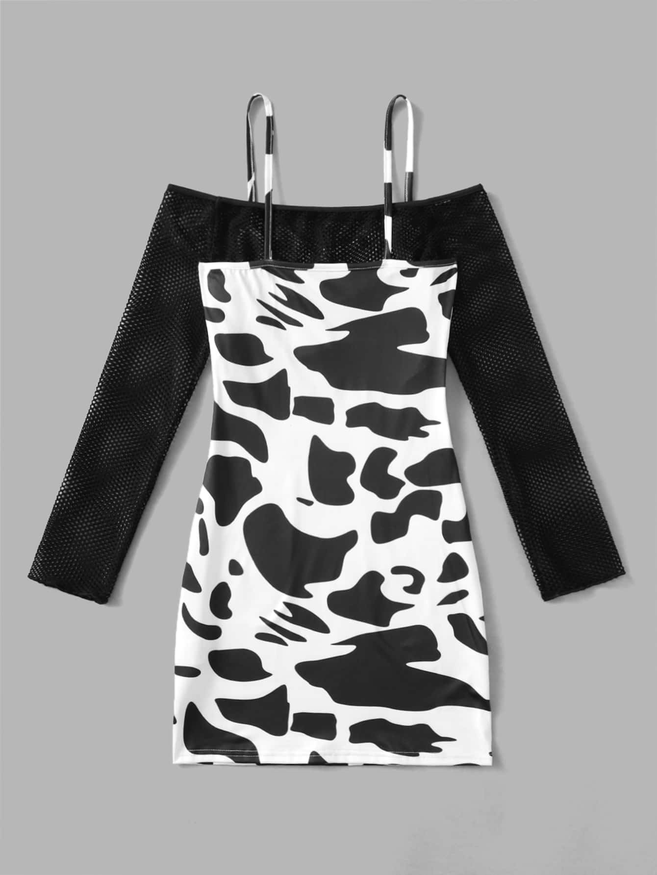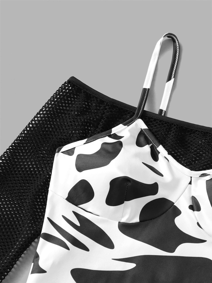 Fischnetz Top & Kuh Muster Cami Kleid
