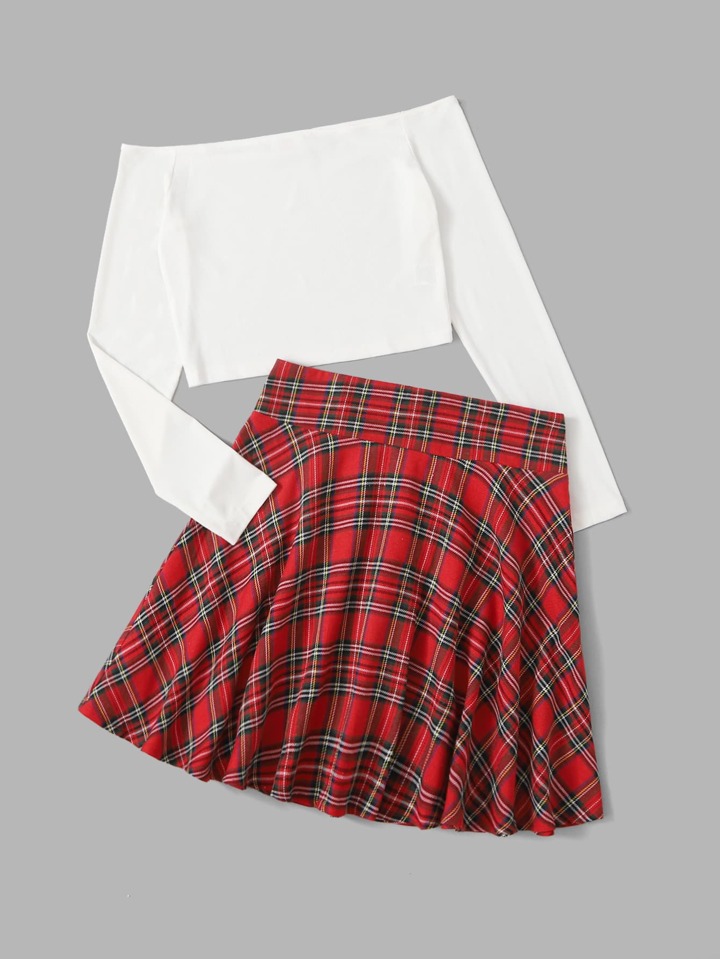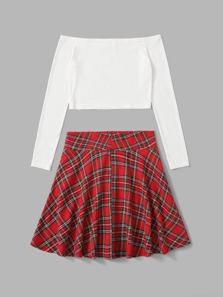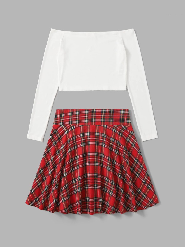 Schulterfreies T-Shirt & Tartan Muster Rock