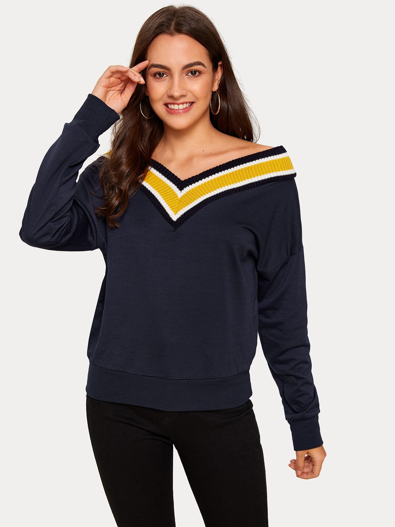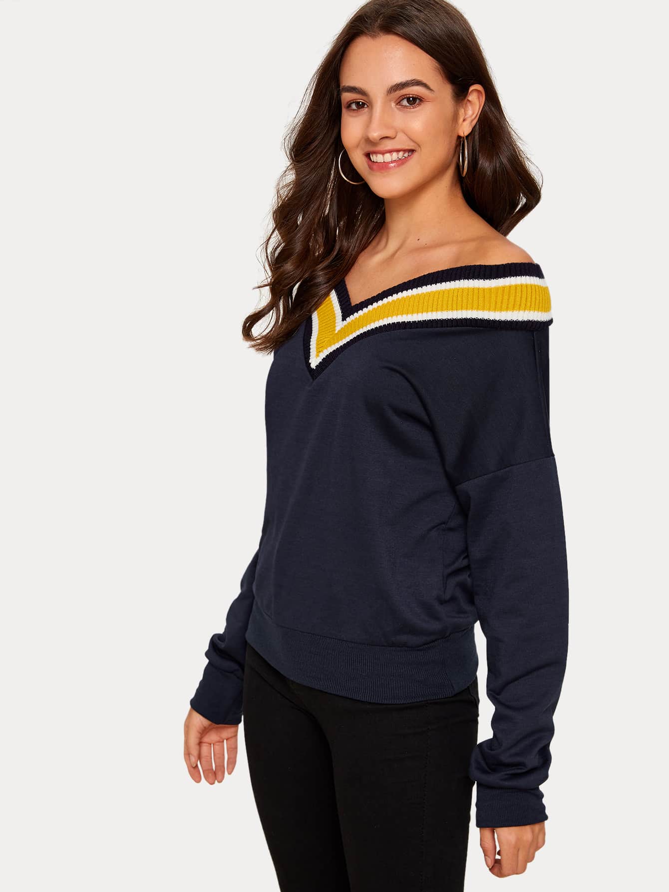 Schulterfreies Sweatshirt mit Streifen