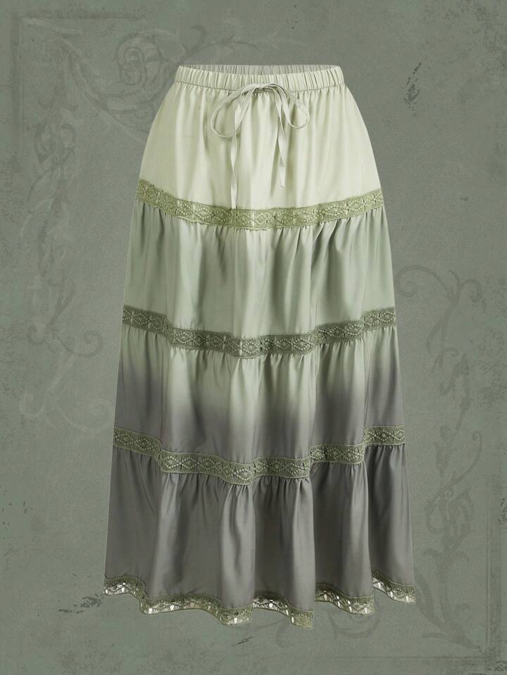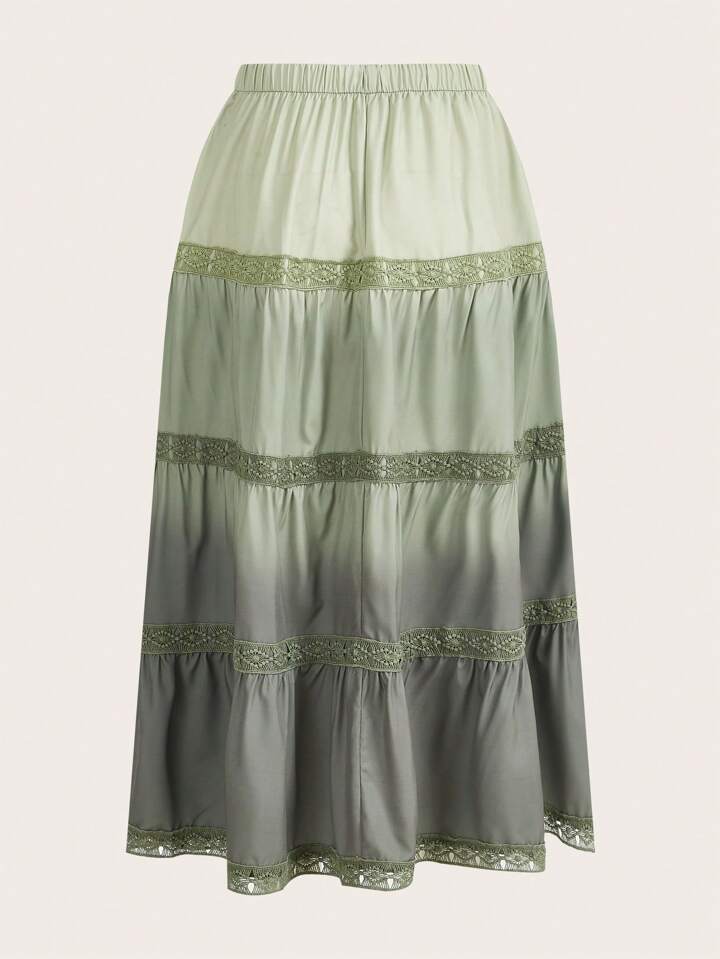 Rock mit Farbverlauf, Kontrast Spitzenbesatz,