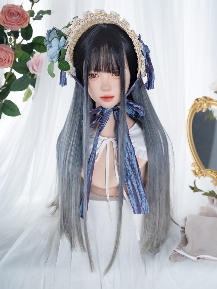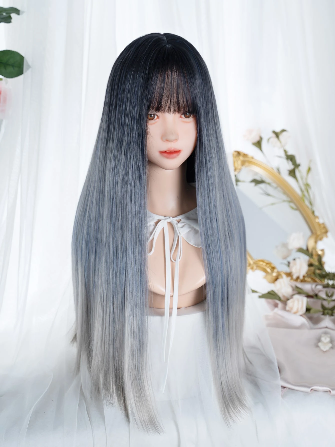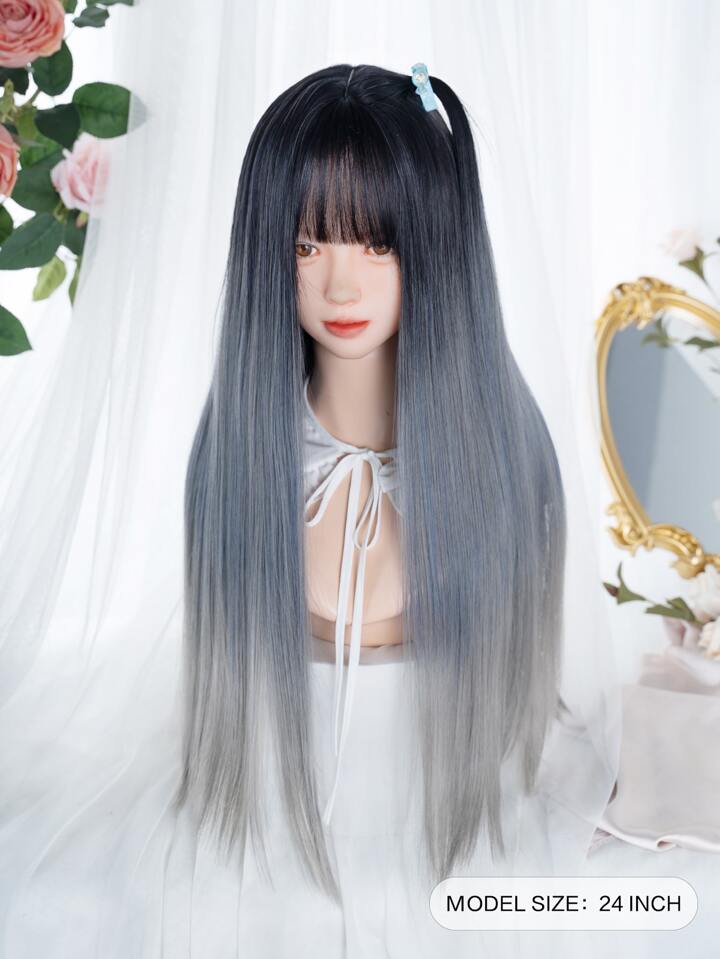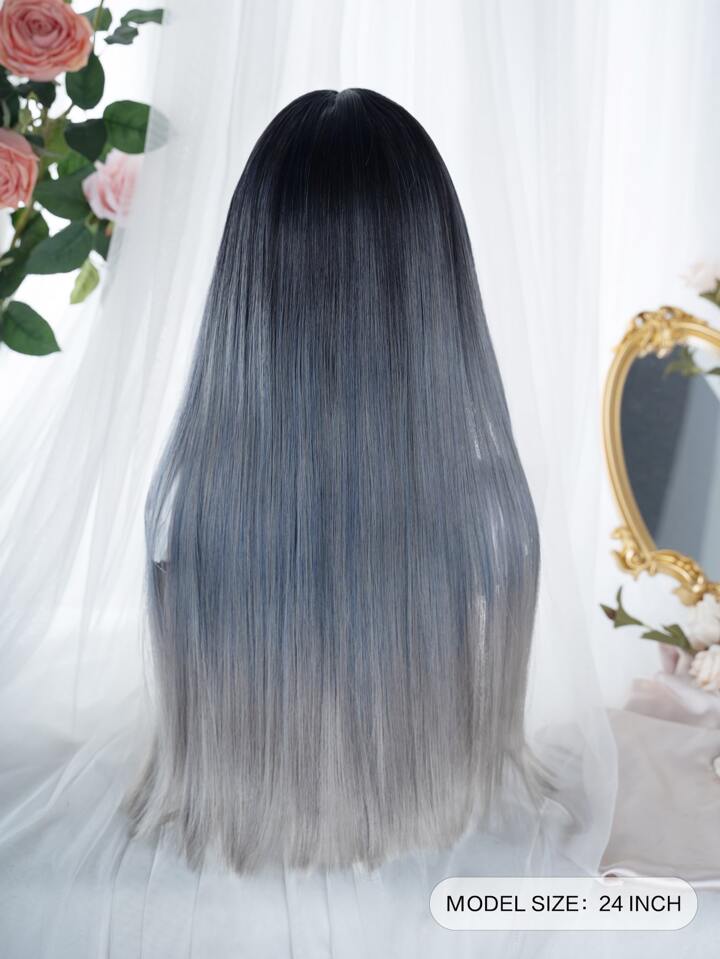 Künstliche Perücke Farbverlauf, Lang Gerade mit Pony