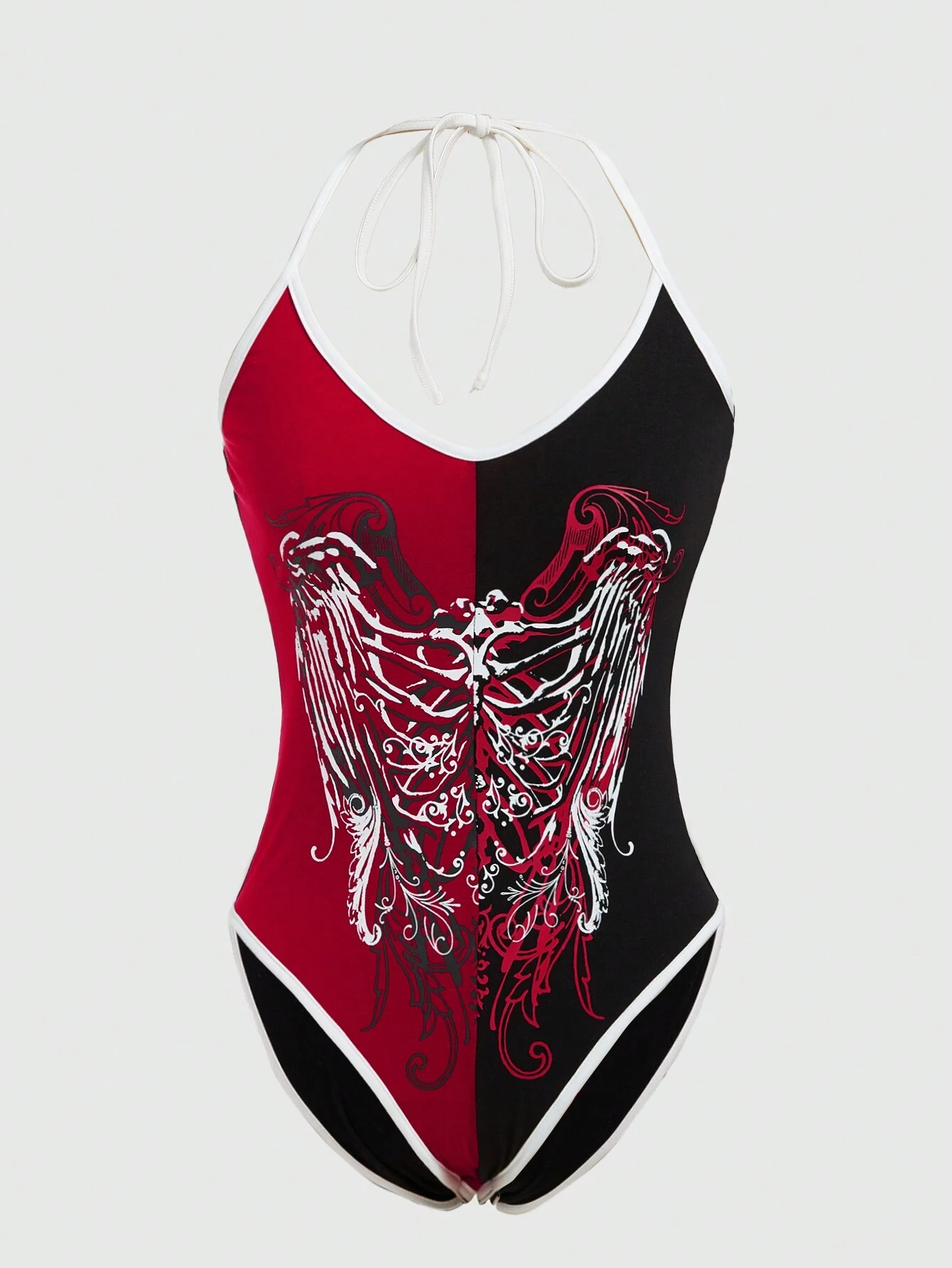 Paola Cardenas e Oliveira Eng Anliegendes Halter Bodysuit Mit Flügel Skelett Druck Und Color Block-design