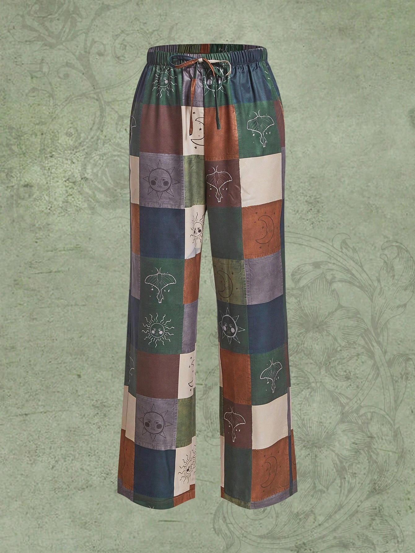 Hose mit Patchwork Muster, Knoten auf Taille,