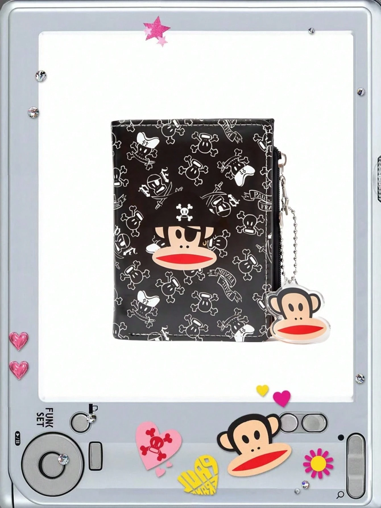 Paul Frank X ROMWE 1 Stück Unisex Totenkopf & Piraten Cartoon Muster Kreatives Design Lässig Kurze Geldbörse