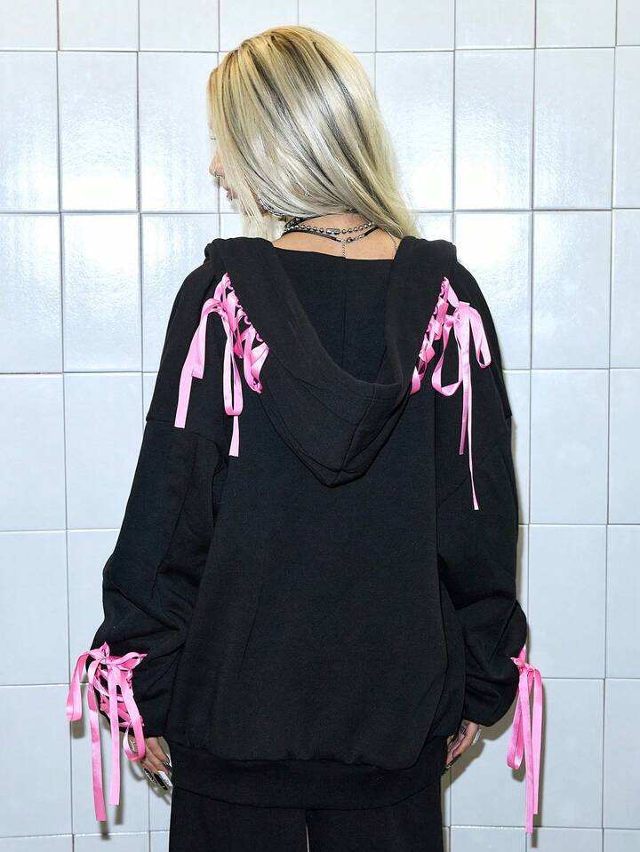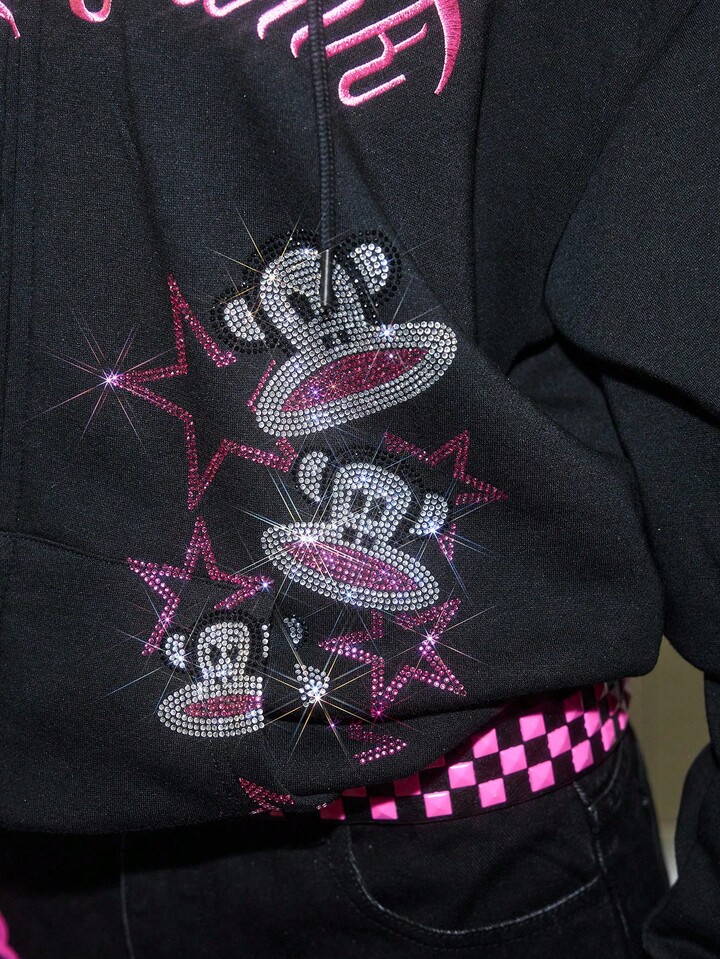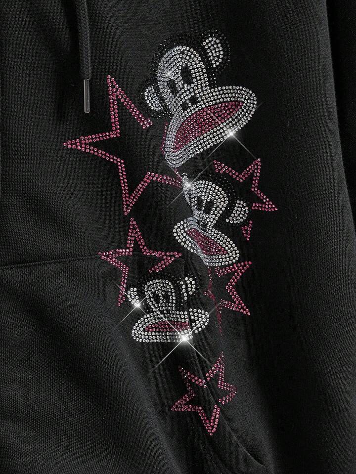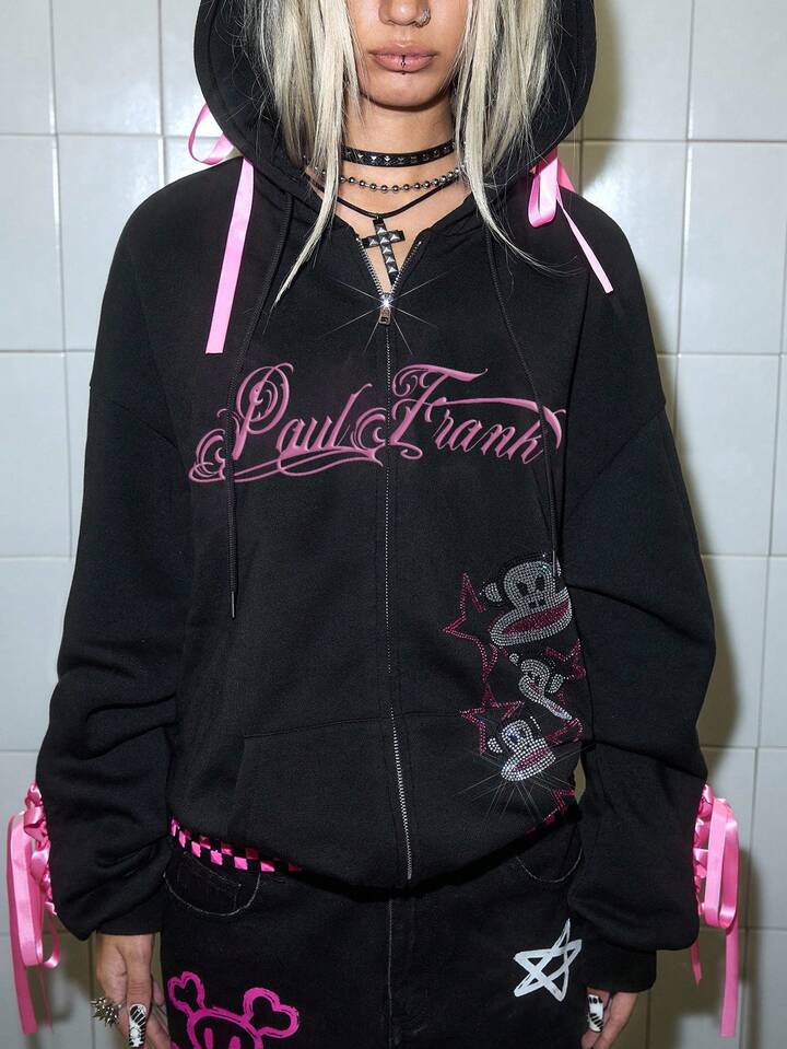 Paul Frank X ROMWE Lässiger Kapuzenpullover mit Schnürdetail und Strass im Street-Chic-Stil