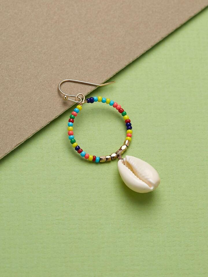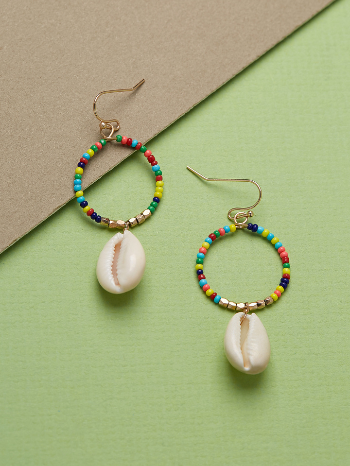 Ohrringe mit Haken hinten, Perlen Detail und Muschel