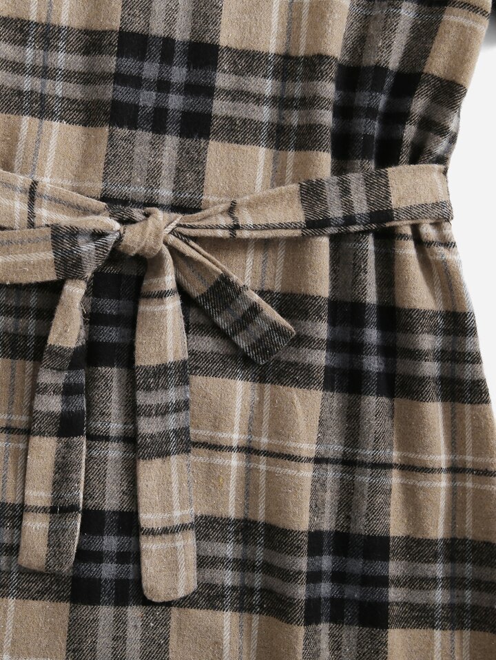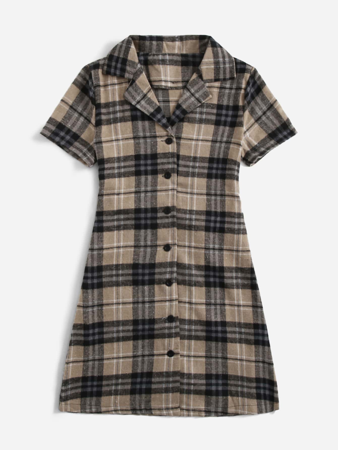Kleid mit Plaid Muster und Knöpfen vorn