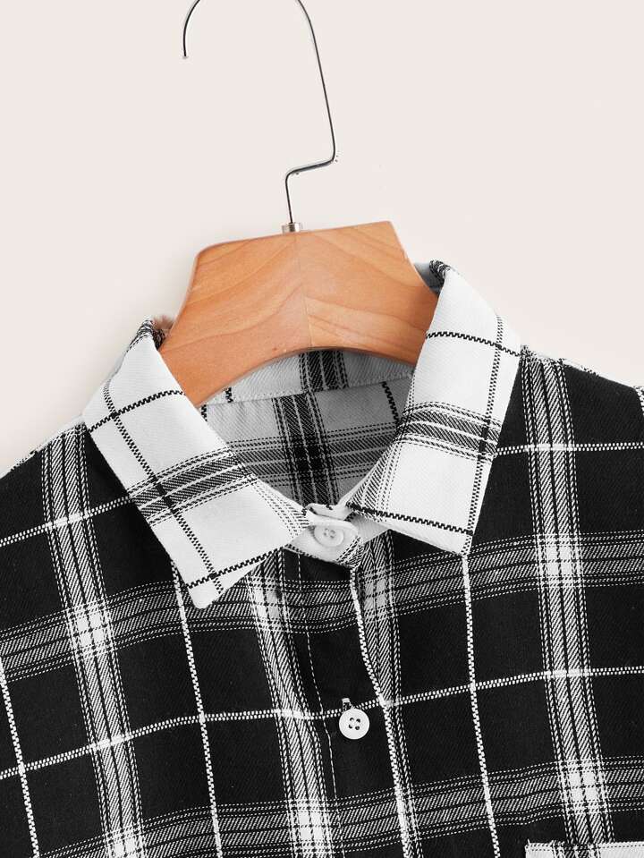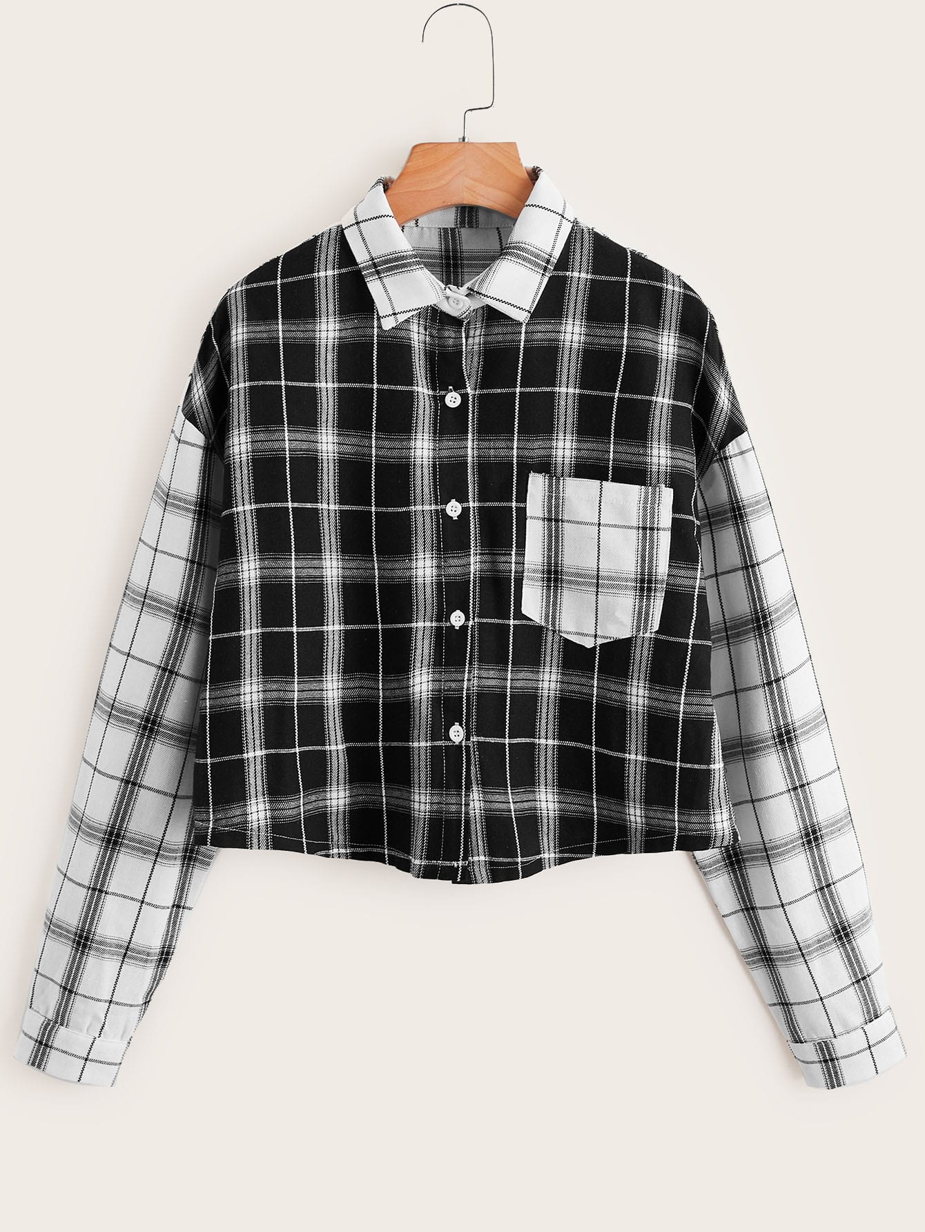 Shirt mit Plaid Muster, Farbblock, Knopf vorne