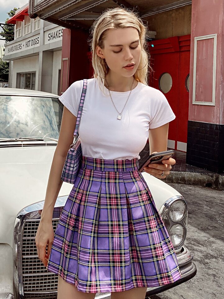 Rock mit Karo Muster, hoher Taille und Falten