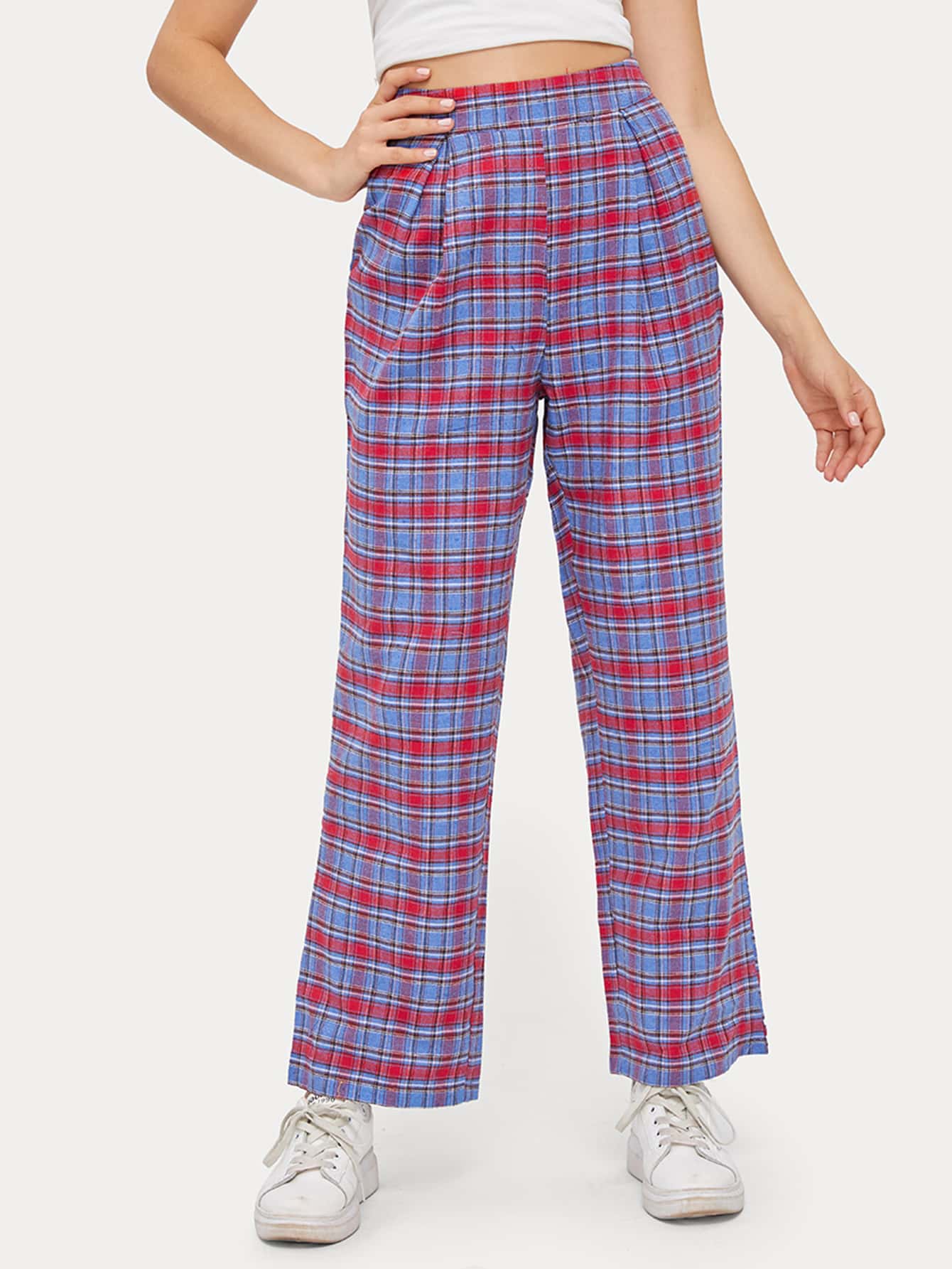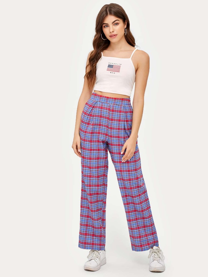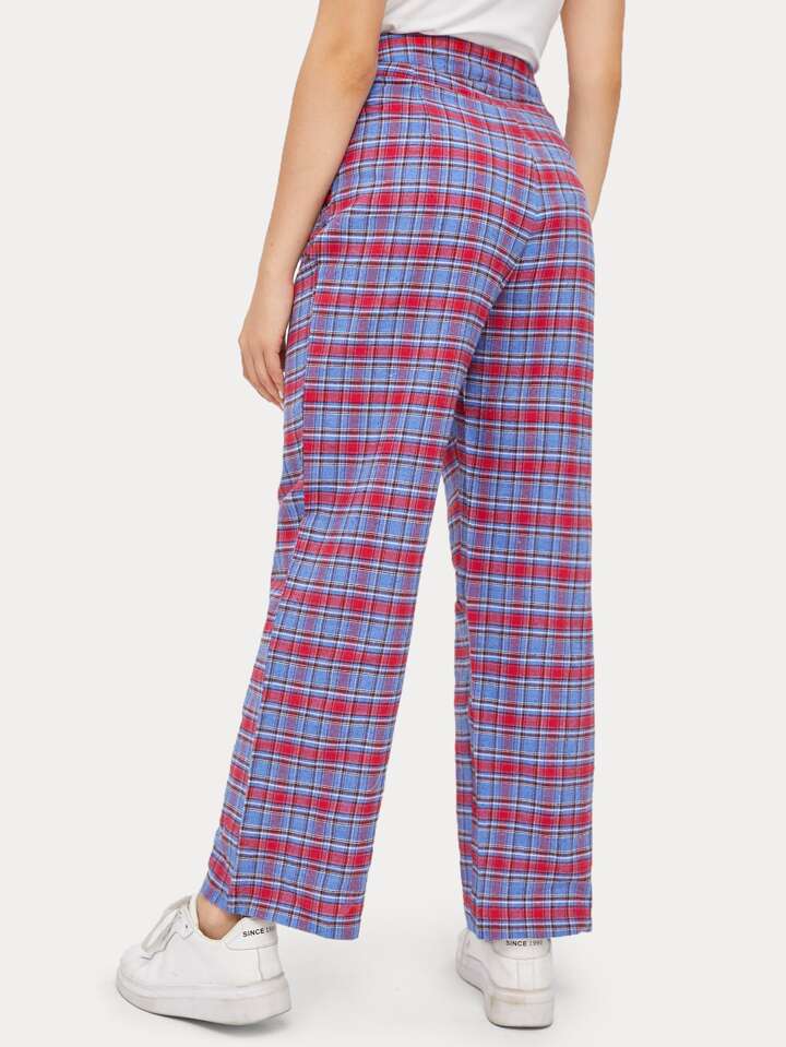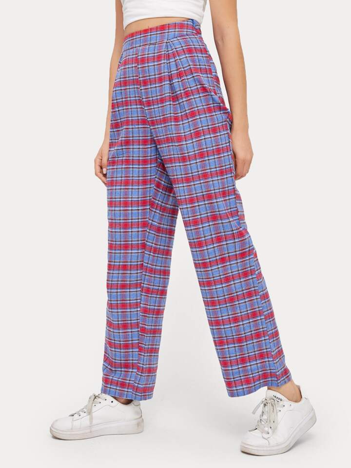 Hose mit Karo Muster und hoher Taille