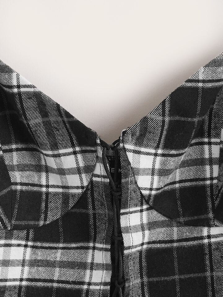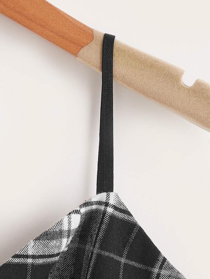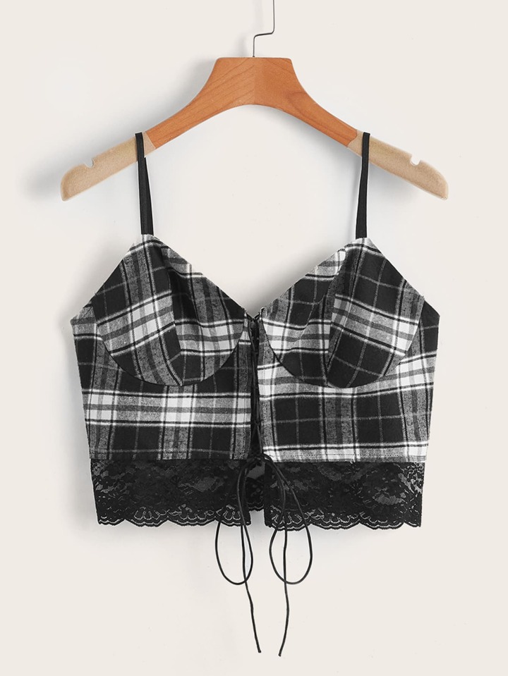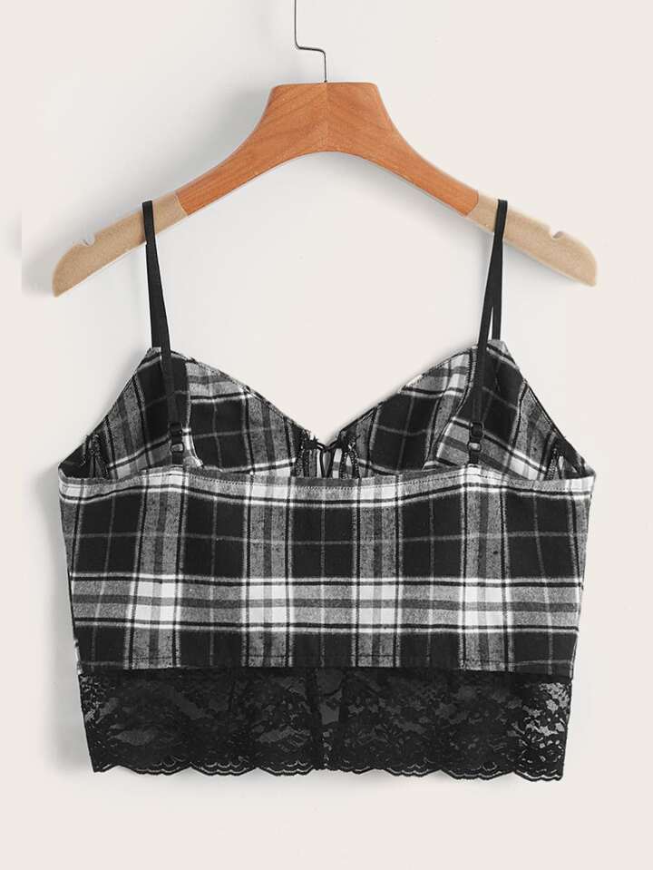 Crop Cami Top mit Plaid Muster, Spitzenbesatz