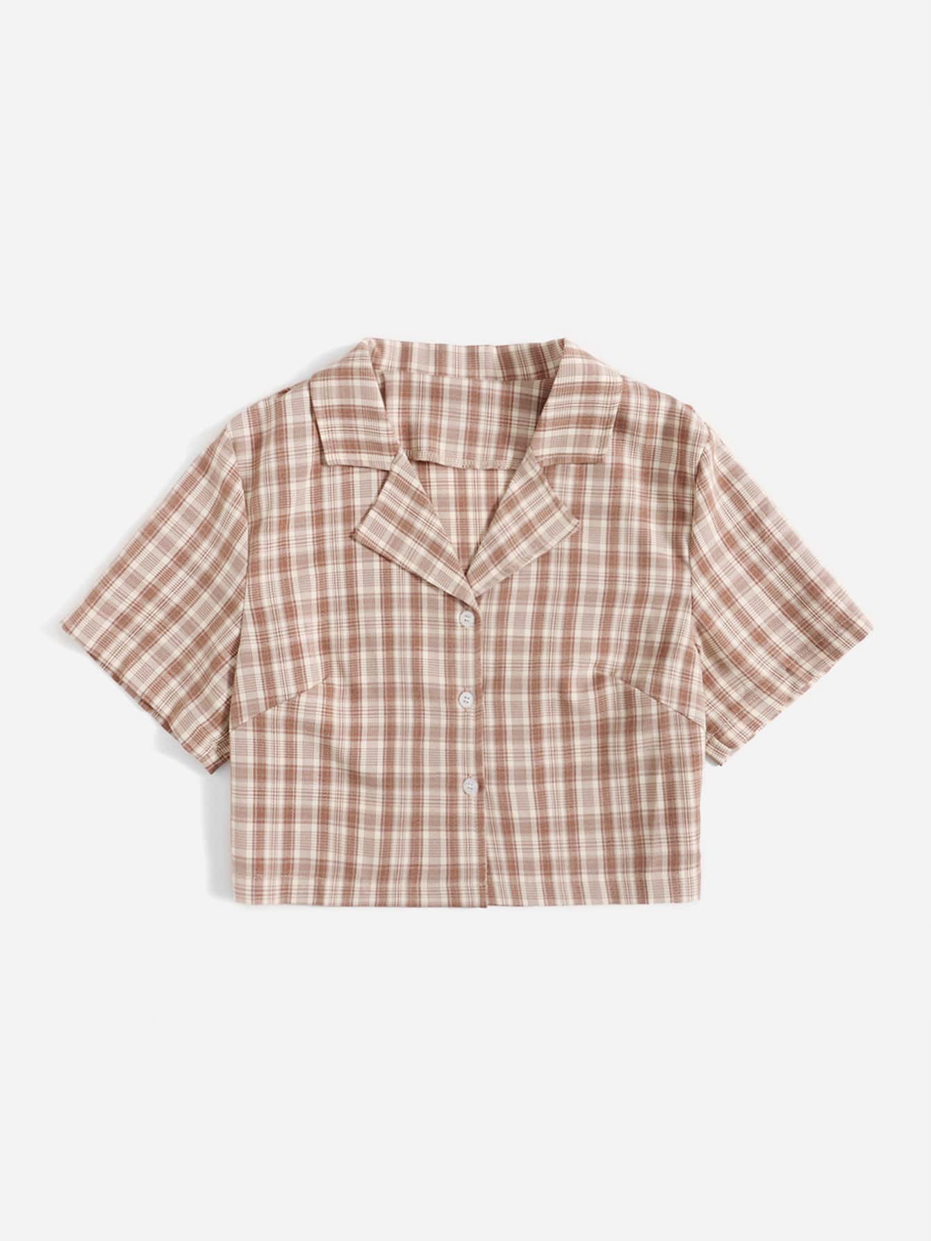 Bluse mit Plaid Muster, Revers