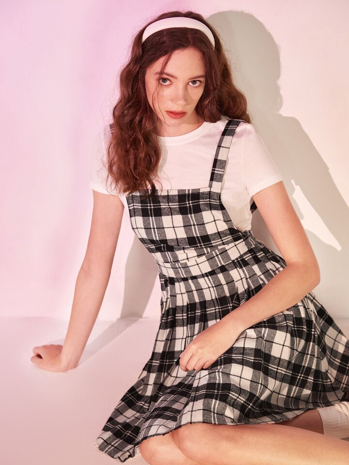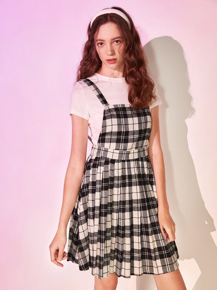 Trägerkleid mit Plaid Muster, ohne T-Shirt