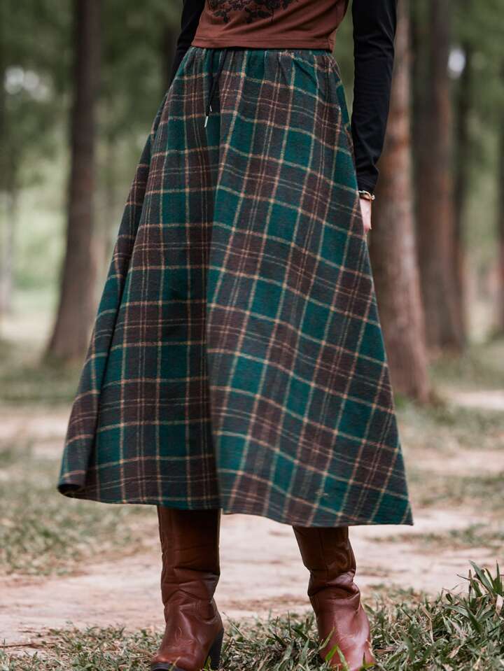 Rock mit Plaid Muster, elastisch Bund