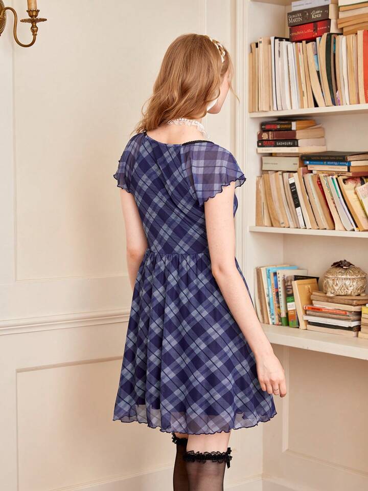 Kleid mit Plaid Muster, Knoten vorn,