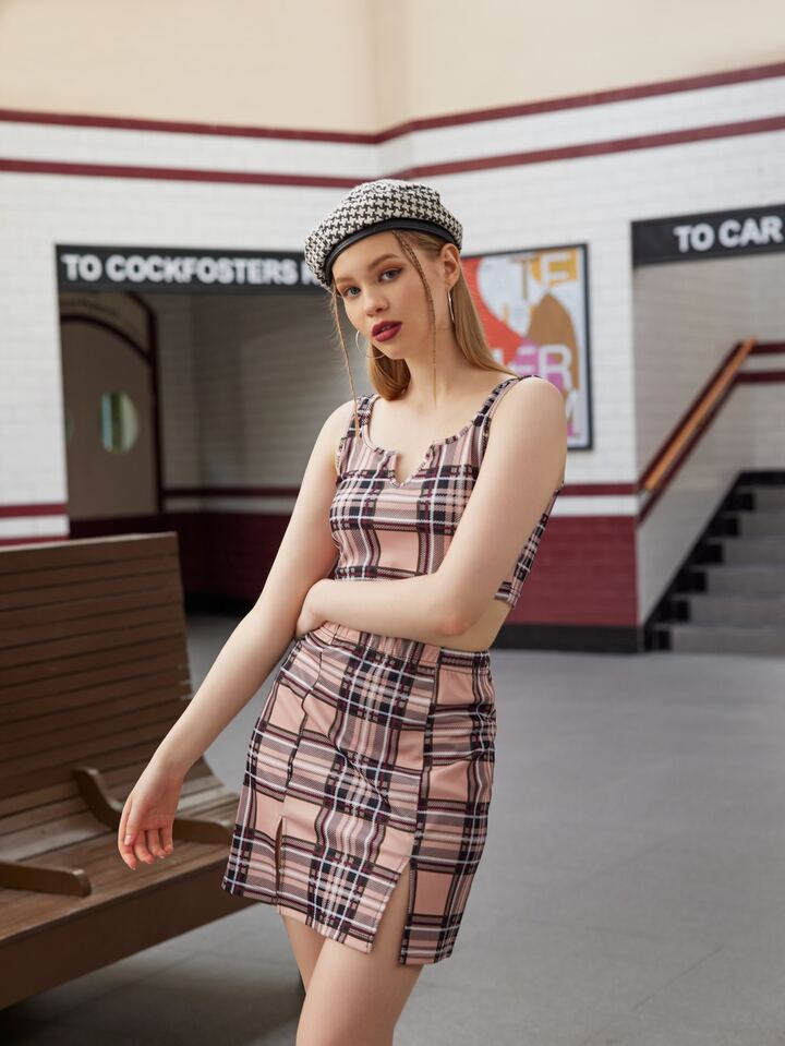 Tank Top mit Plaid Muster & Rock mit Schlitz am Saum