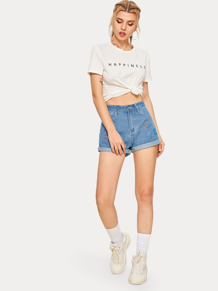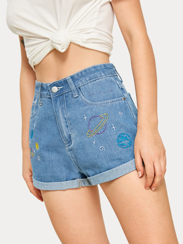 Jeans Shorts mit Stickereien