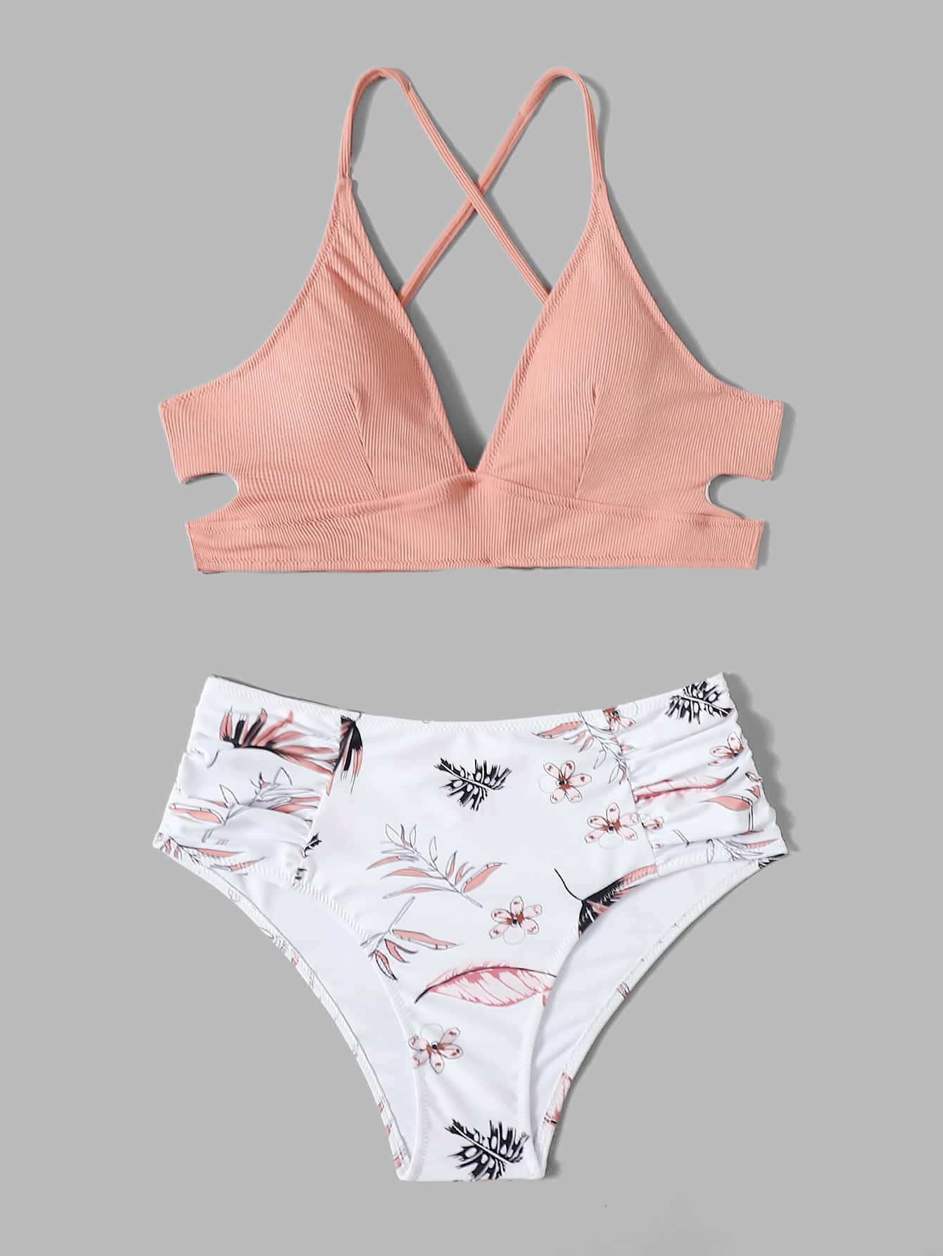 Bikini mit Pflanzenmuster und Bindeverschluss hinten