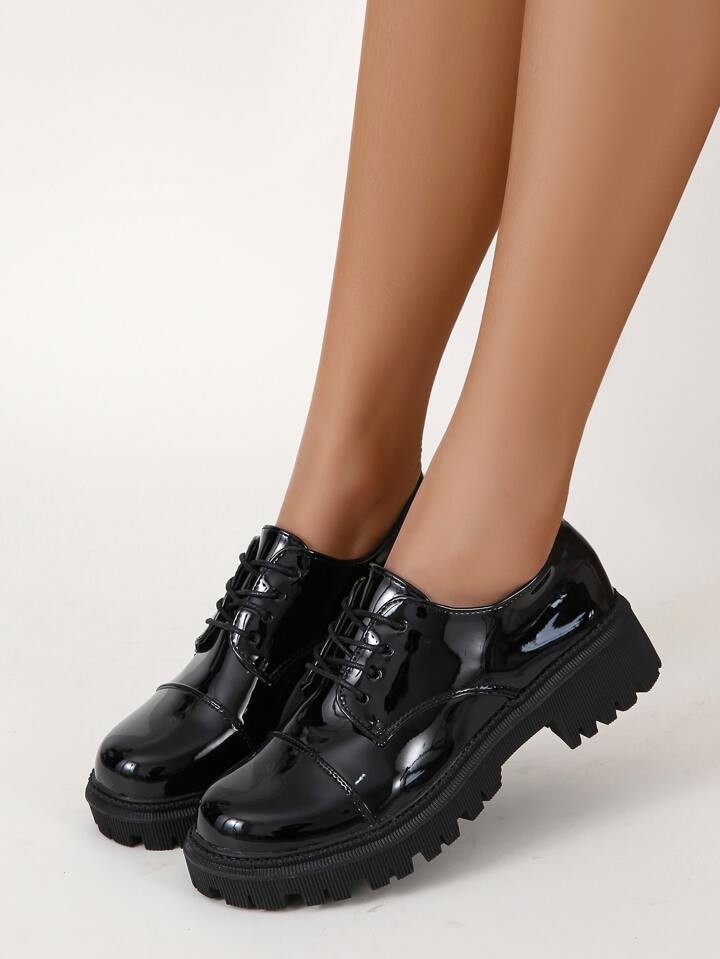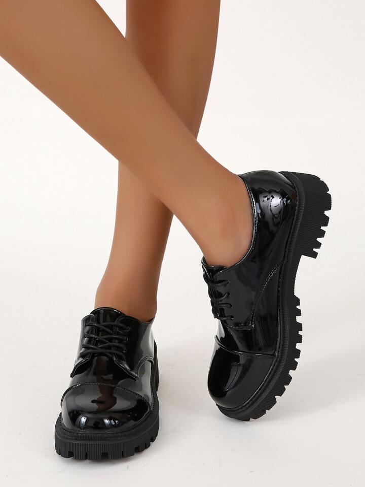 Oxford Schuhe mit Plateau, Band vorne