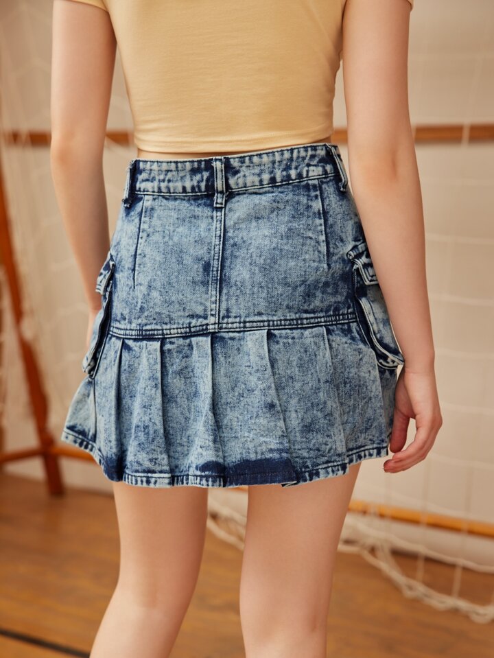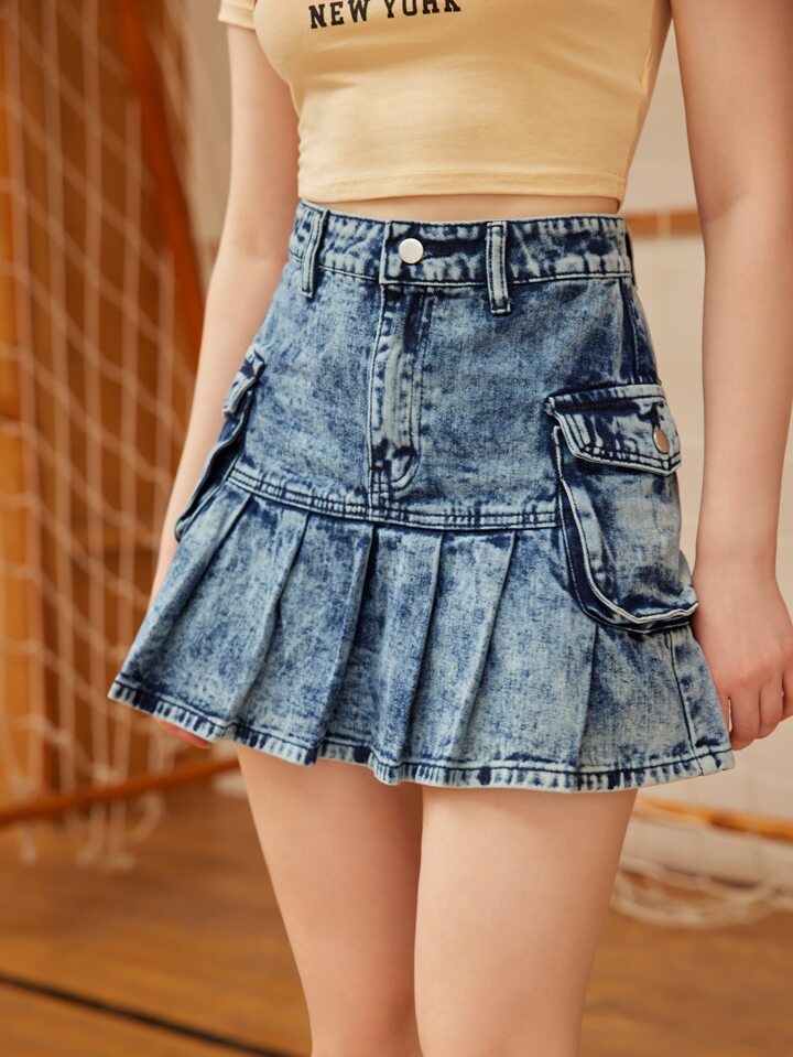 Denim Rock mit Falten am Saum