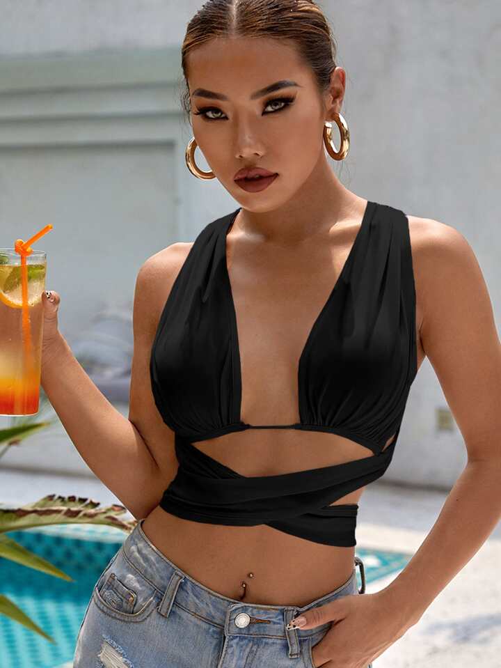 Tank Top mit tiefem Kragen, Criss-Cross und Band hinten